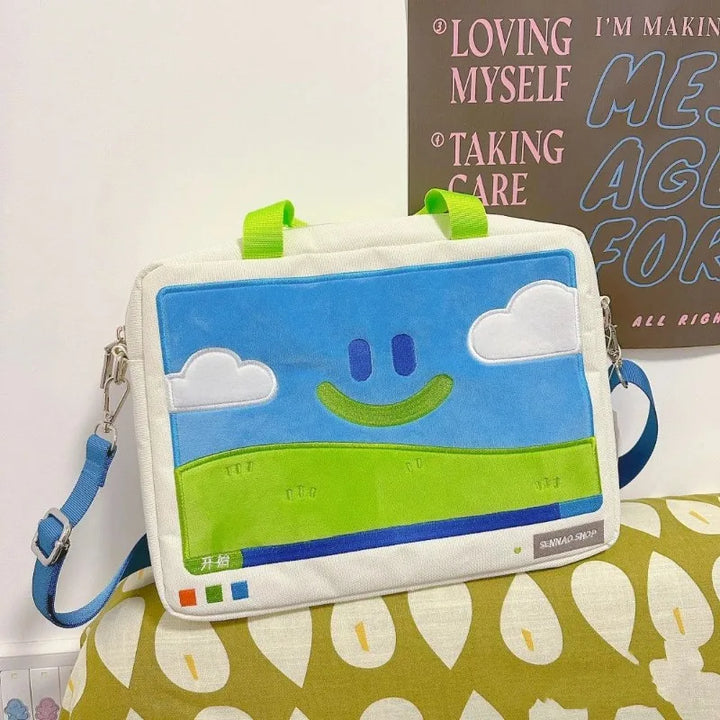 Y2K error-turned-accessory! 3D-embroidered Windows XP bag with 'Bliss' landscape lining. Perfect for coding marathons or ironic brunch flex.