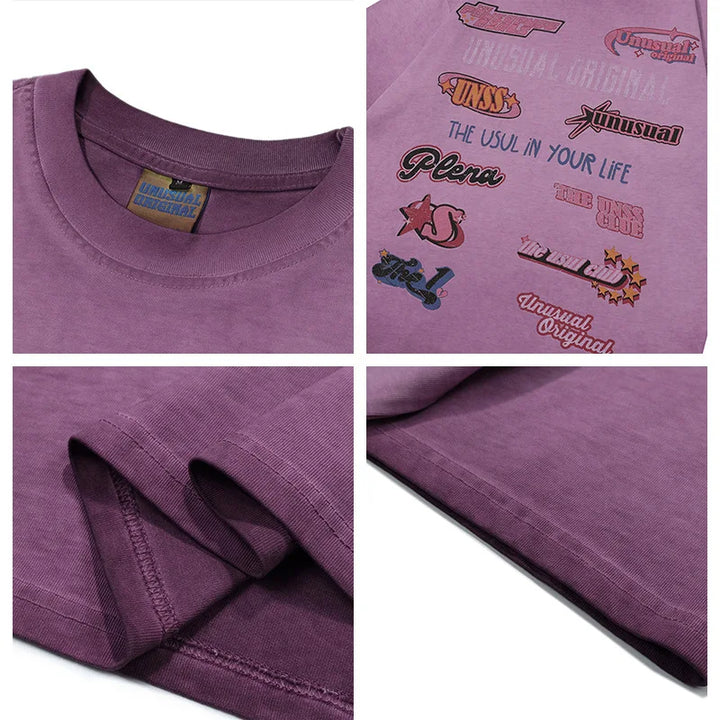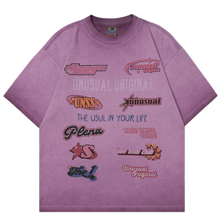 Retro Letter Print Gradient Color T-Shirt