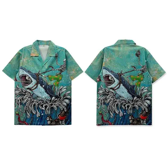 Graphic Shark Hawaiian Beach Shirt