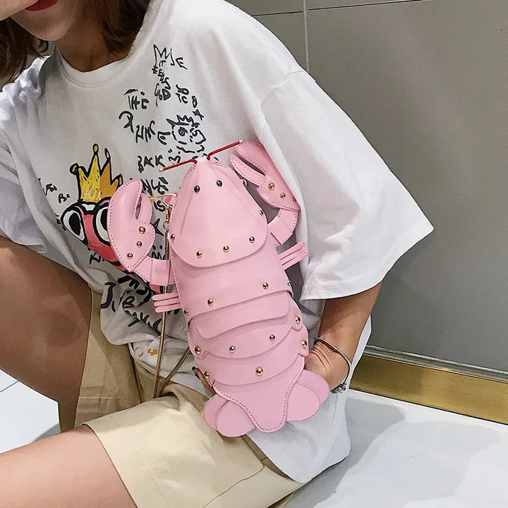 3D Lobster Mini Women Handbag – Pinch-worthy nautical chic! Sculpted crustacean body with articulated claws, pearl-detail eyes & waterproof woven straps.