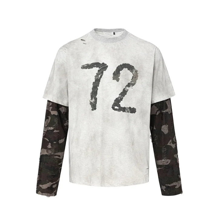 "72" Camouflage Long Sleeve Spliced T-Shirt