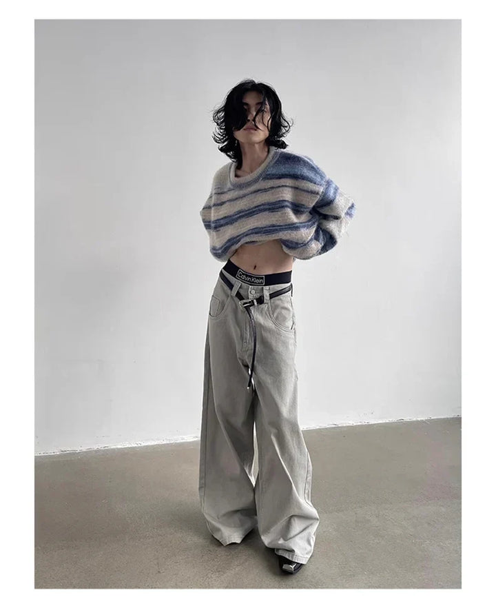 Autumn Grey Flowy Baggy Wide Pants