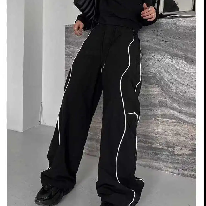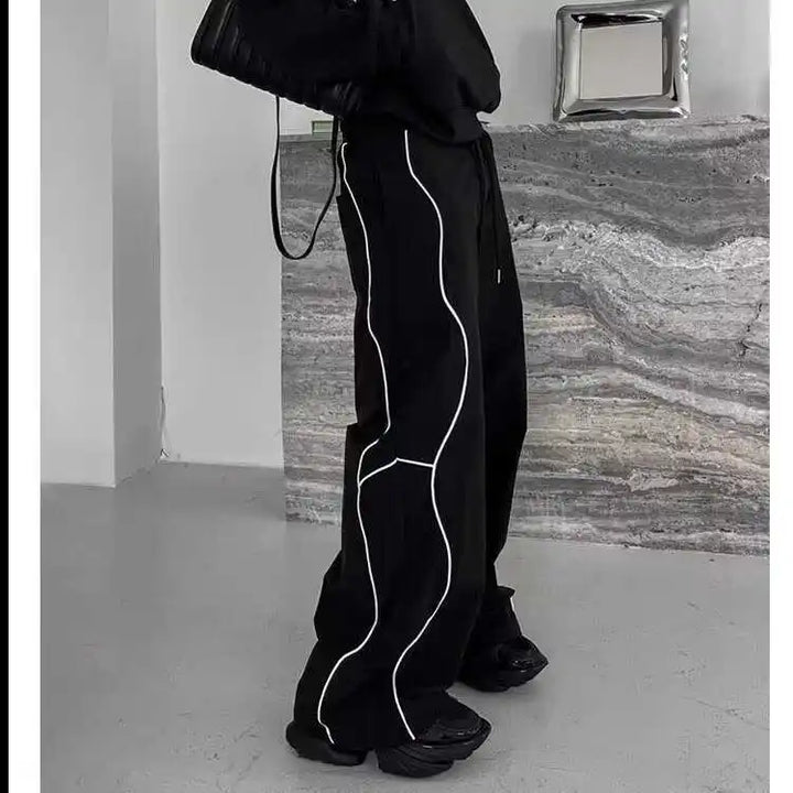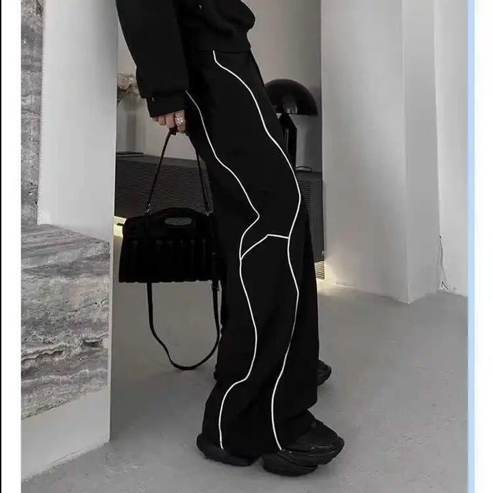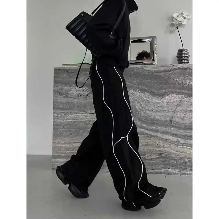 Black Striped Wide-Leg Pants Spring