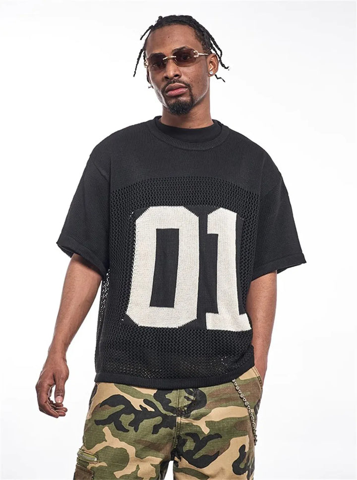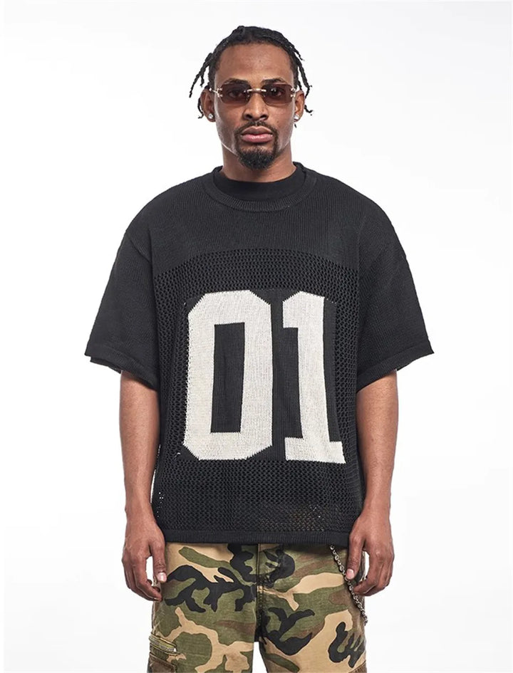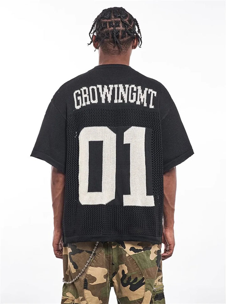 Breathable Crew Neck Jacquard Knit T-Shirt