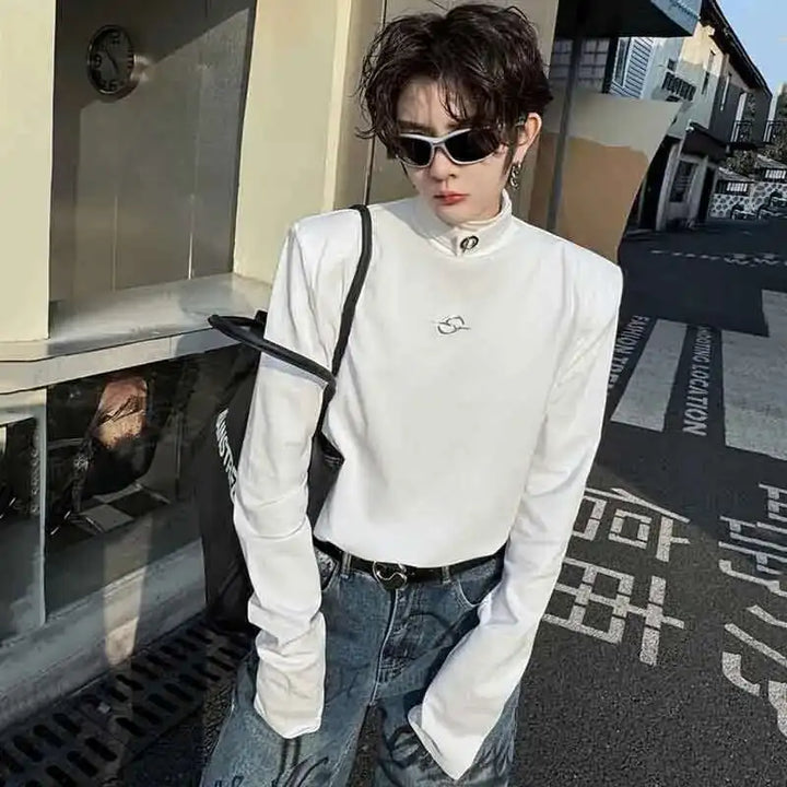 Chic Metal Buckle Turtleneck Long T-Shirt