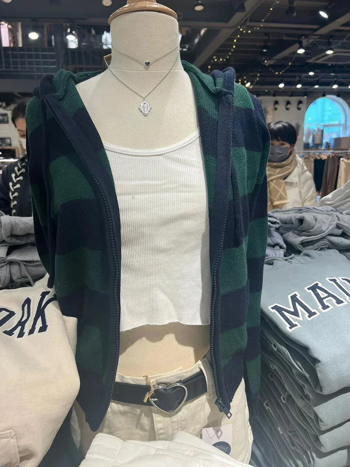 Cozy Striped Knitted Hooded Sweater