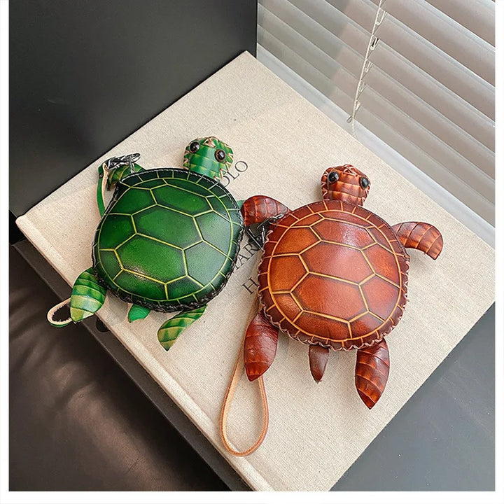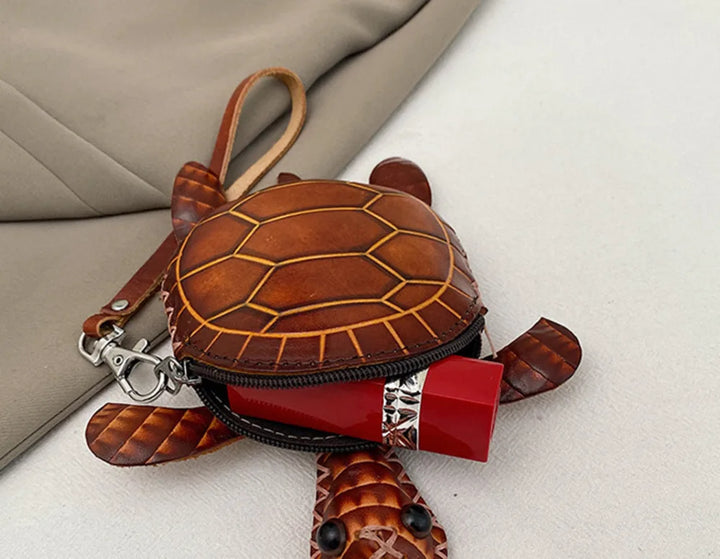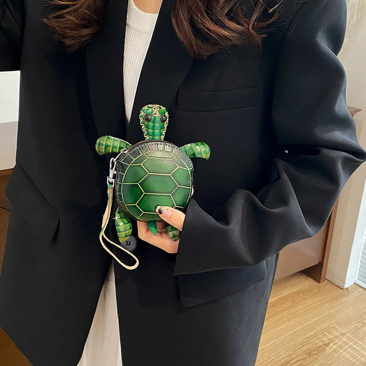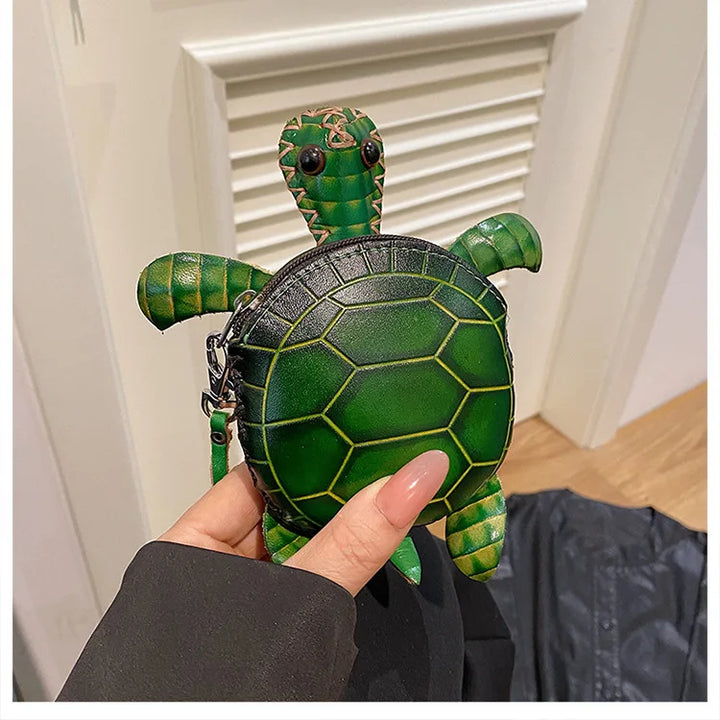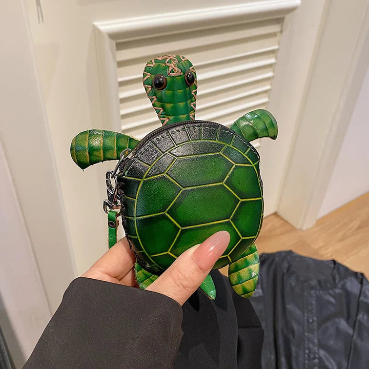 Y2K turtle pouch that carries your life! Retractable head zipper pull, speckled shell texture & secret inner pocket. For speedy errands at snail's pace.