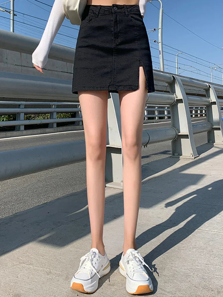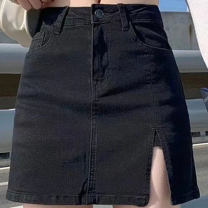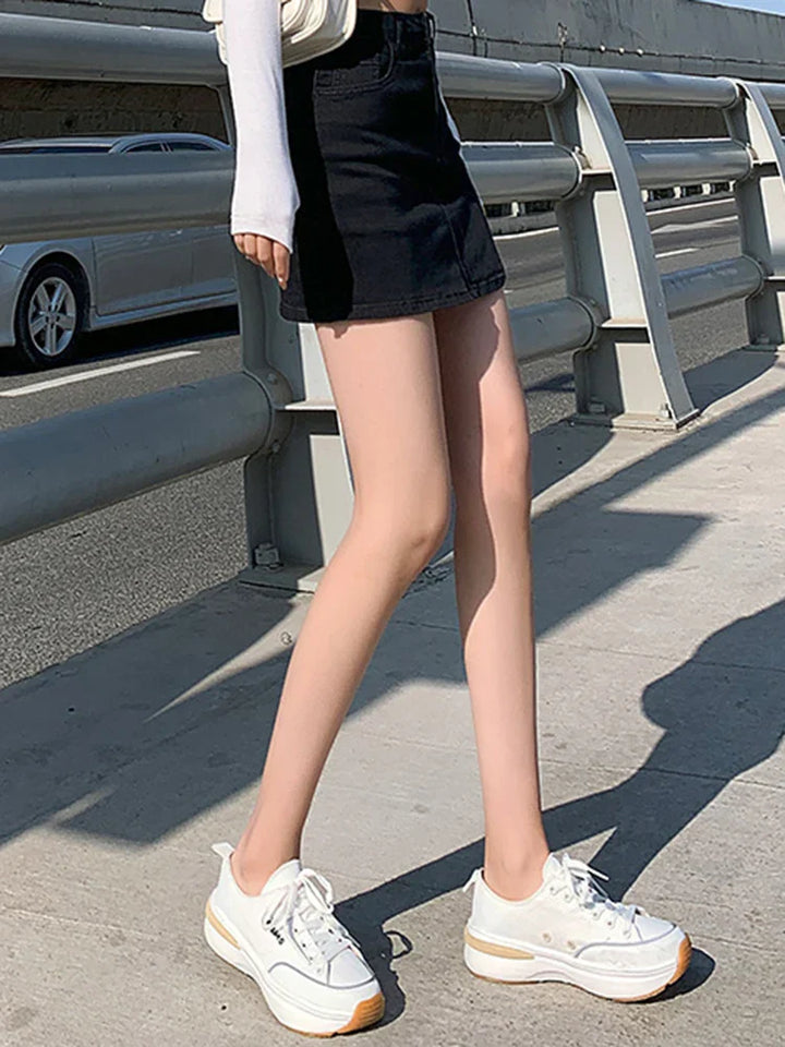 Elastic High Waist Denim Skirt