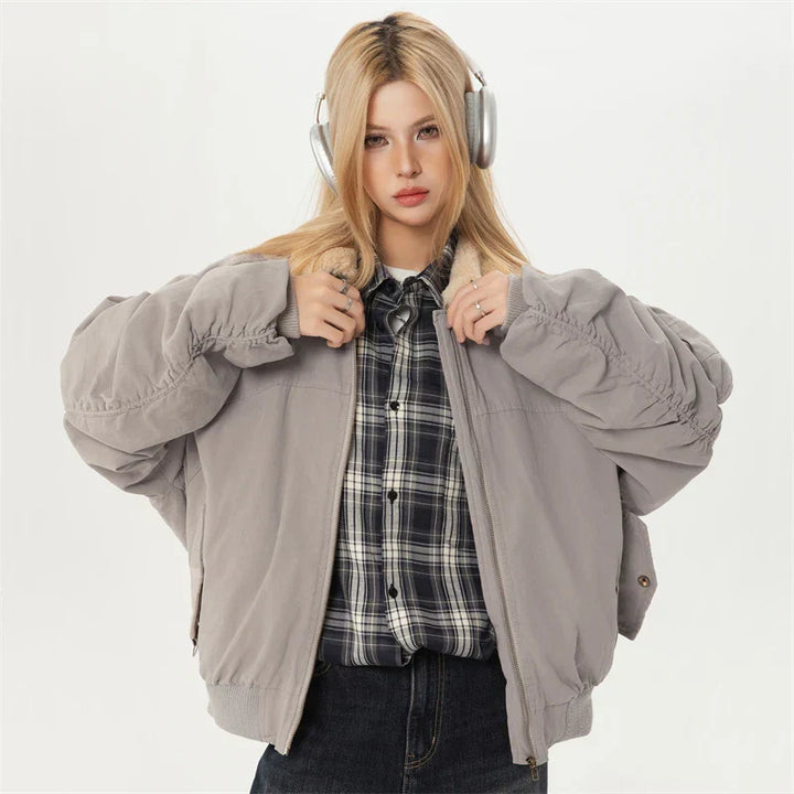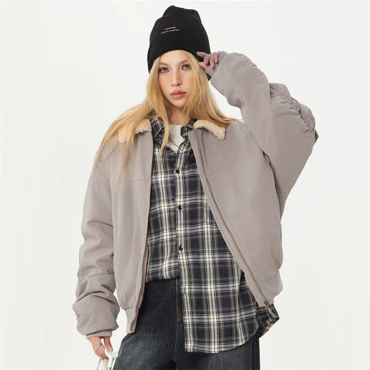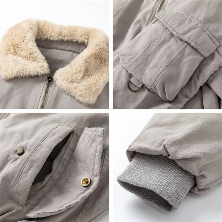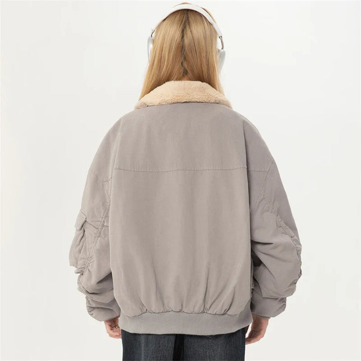 Elegant Plush Collar Winter Short Jacket.