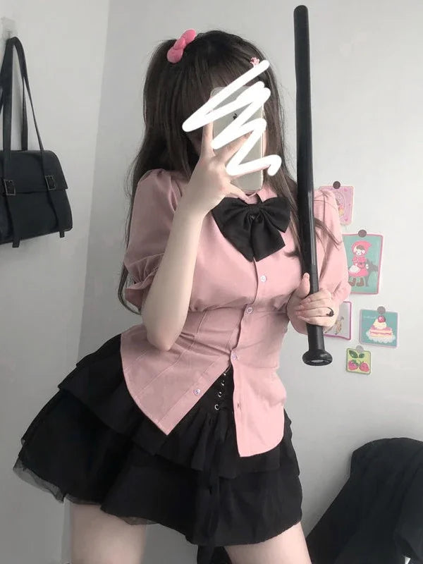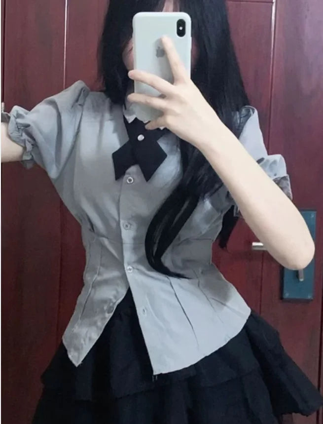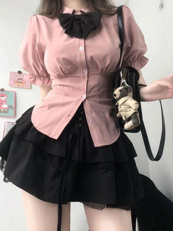 Elegant Slim White Blouses Japanese Shirt