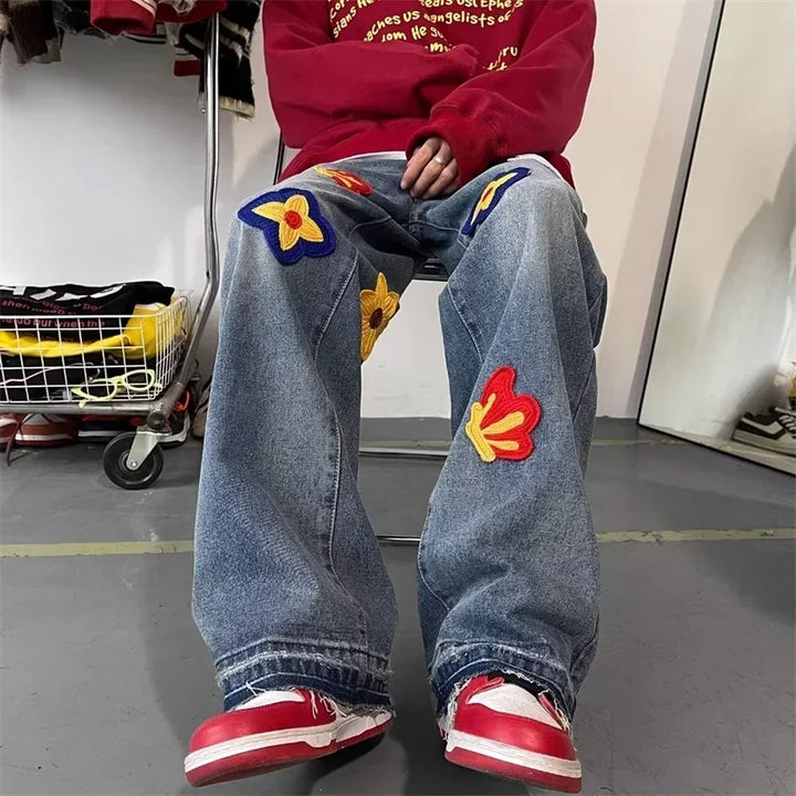Embroidered Flower Denim Jeans