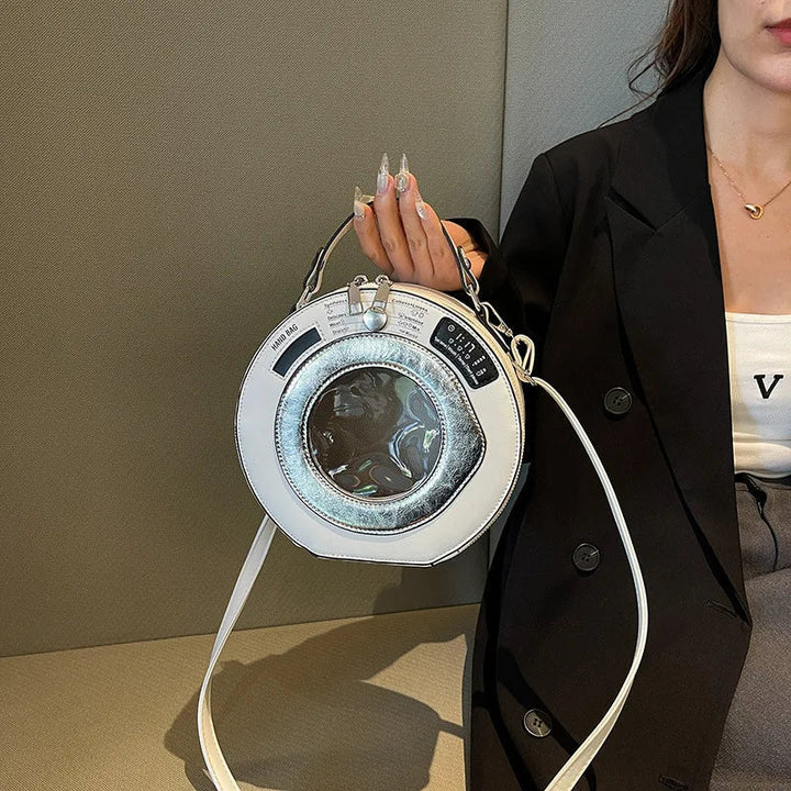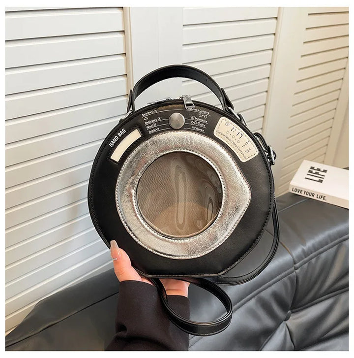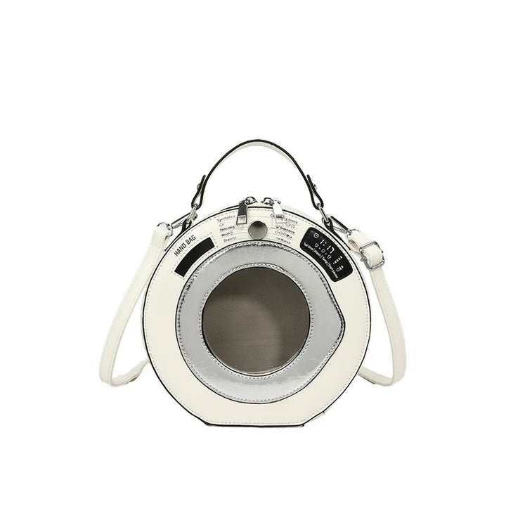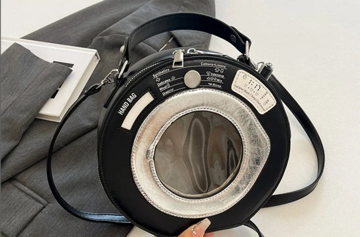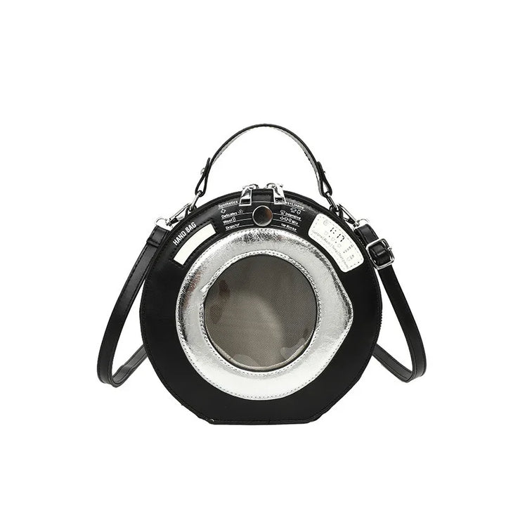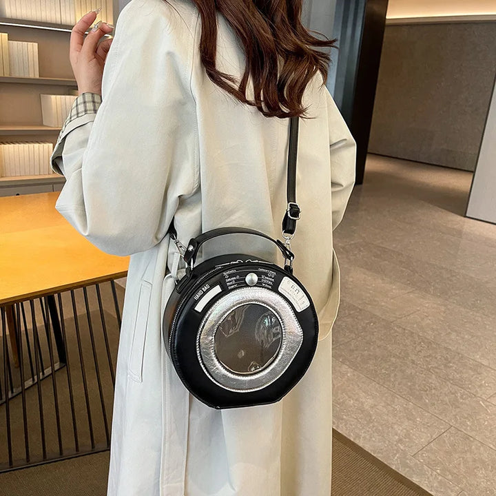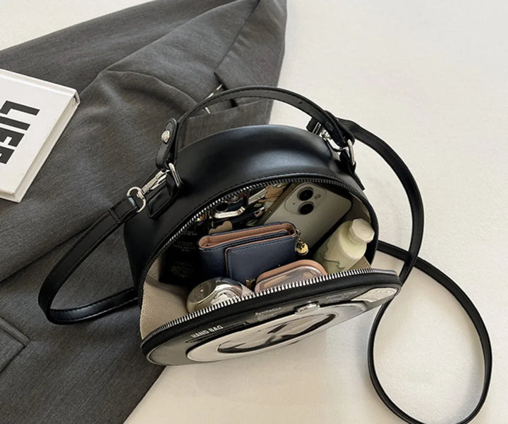Y2K camera purse that focuses on nostalgia! Working shutter button pocket, film roll tassel & flash-shaped mirror. Perfect for posing or pretending to paparazzi.