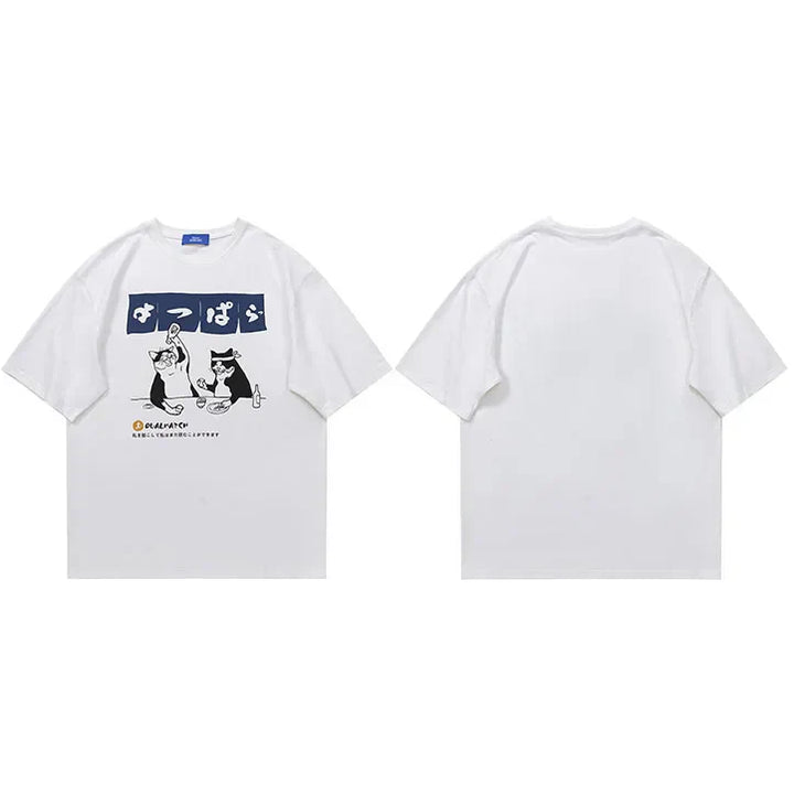 Funny Japanese Cartoon Drinking Cat T-Shirt