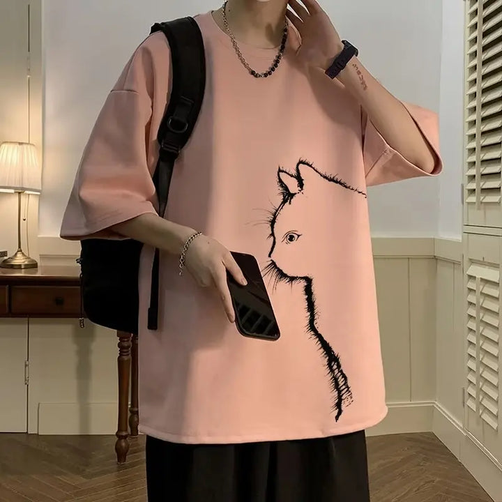 Loose Fit Short Sleeve Summer Cat T-Shirt