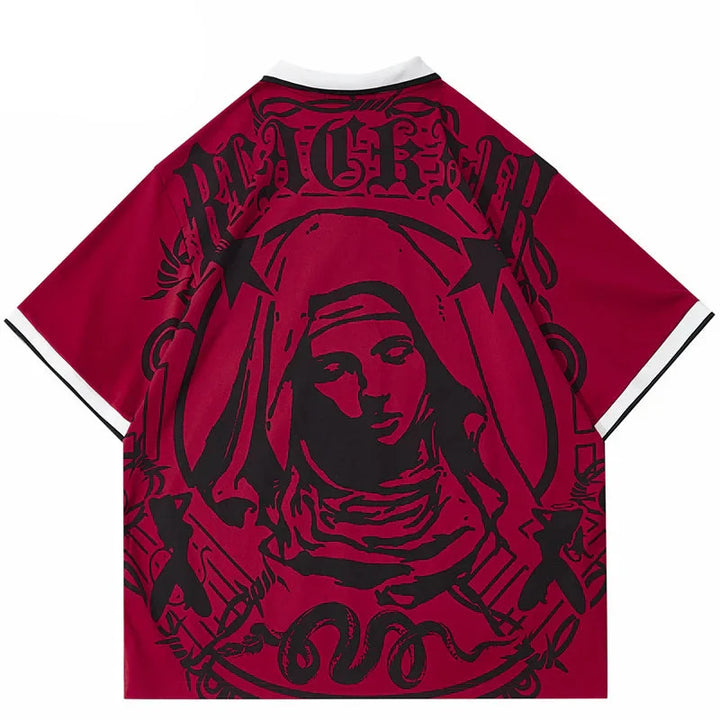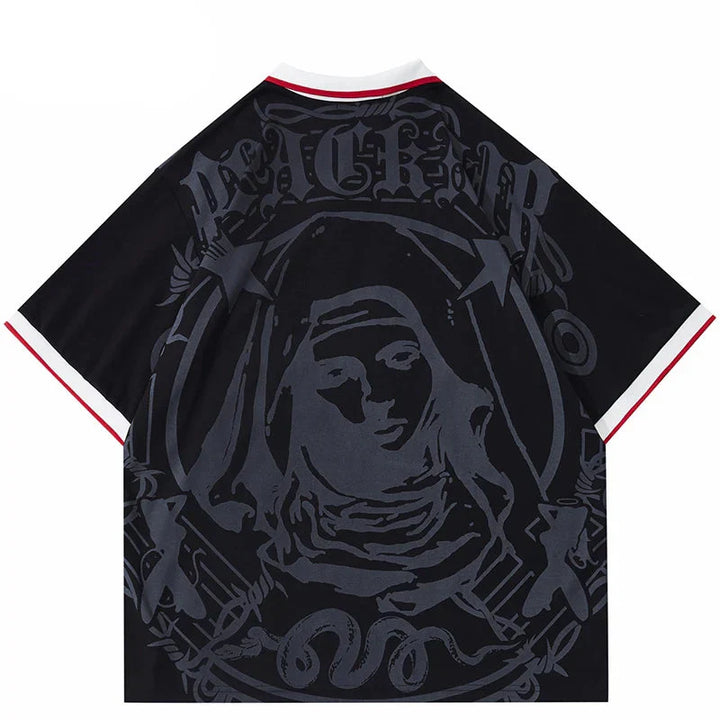 Virgin Mary Retro Graphic Embroidery Polo T-Shirt
