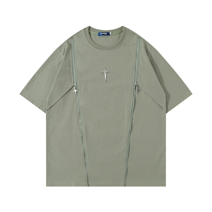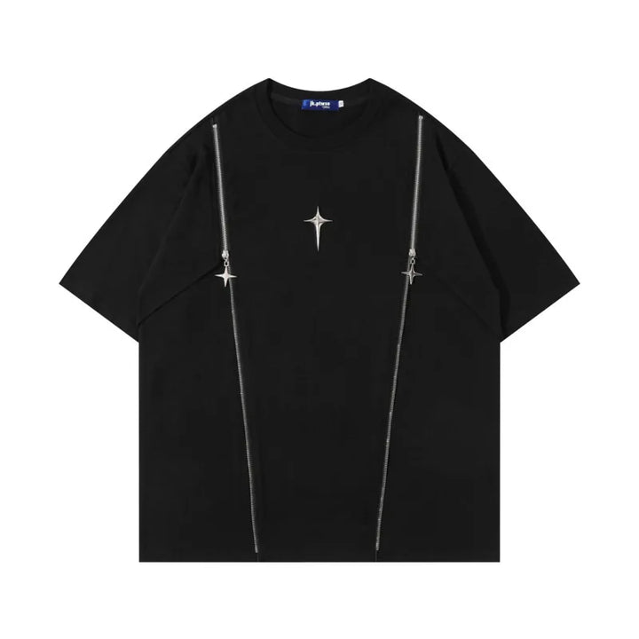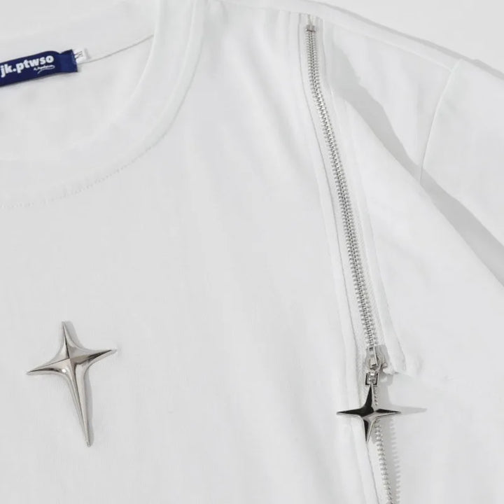 Metallic Patchwork Casual Round Collar T-Shirt