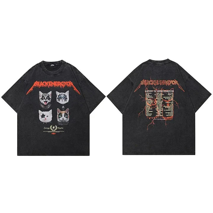 Oversized Funny Graphic Masked Cats T-Shirt