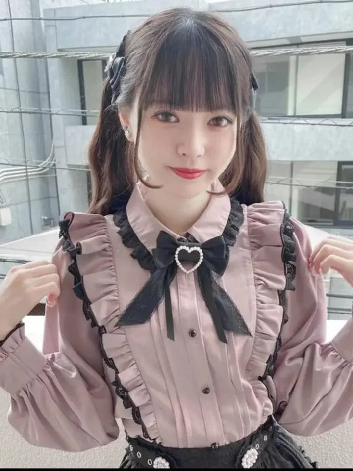 Pink Lace Ruffle Bow Blouse Shirt