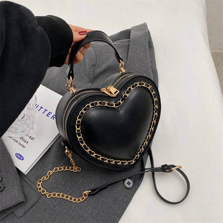 Red Heart Chain Crossbody Bag – Wear your heart on your sleeve (literally)! Glossy patent leather, oversized 3D heart front & adjustable gold chain strap.