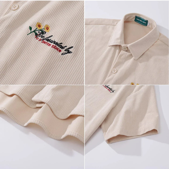 Vintage Striped Corduroy Embroidered Shirt