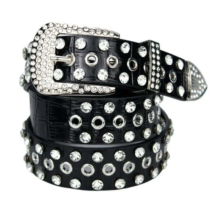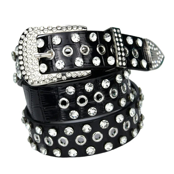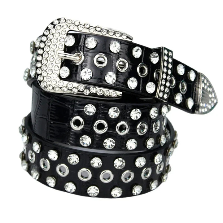 Rhinestone Studded Punk Pu Waist Belt