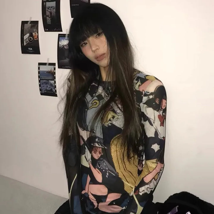 Sheer Japanese Anime Print T-Shirt