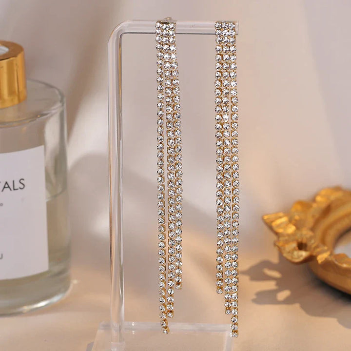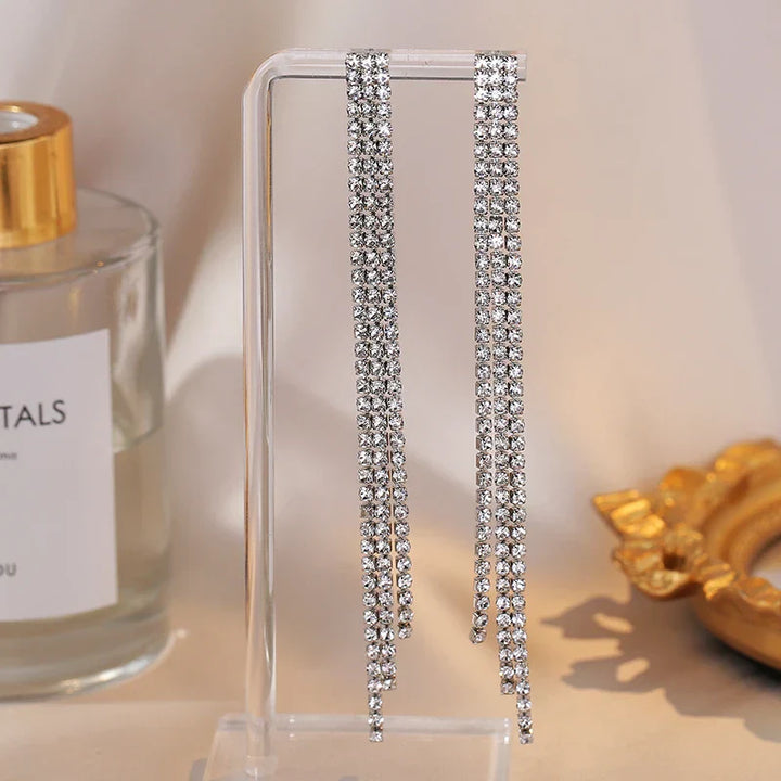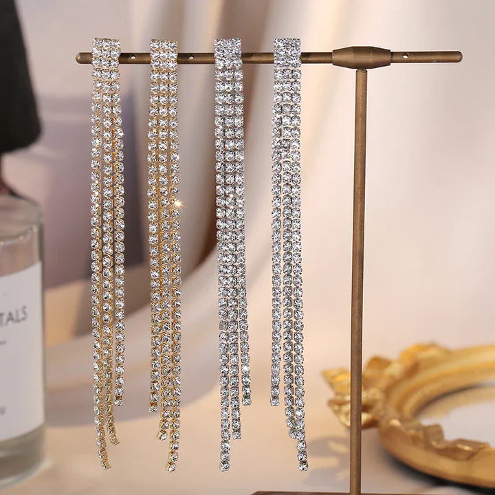Sparkle and shine with Oradola’s long shiny full crystal rhinestone earrings — glamorous, eye-catching designs that add elegance and luxury to any ensemble.