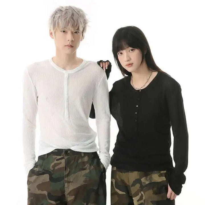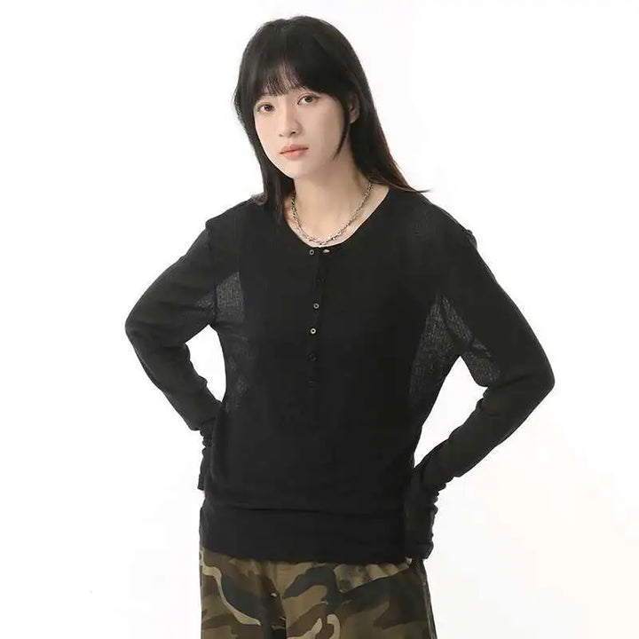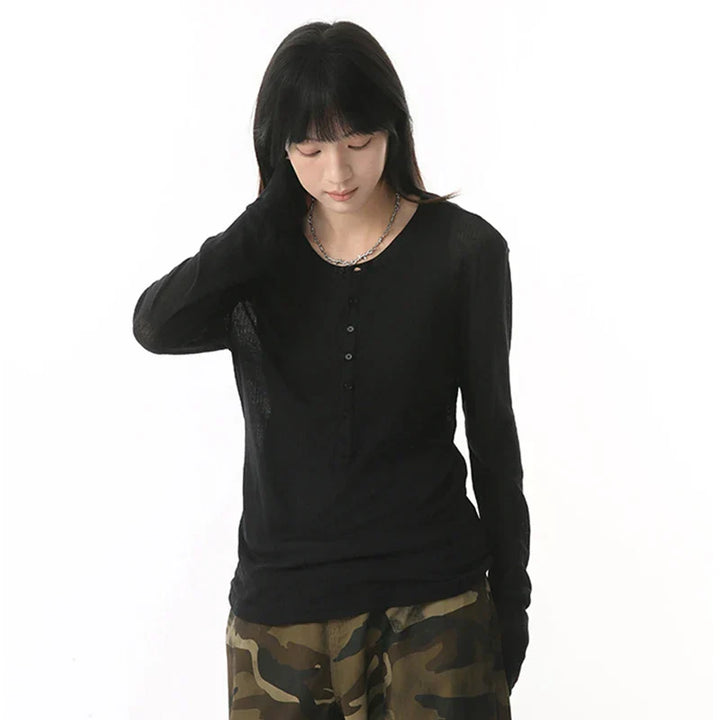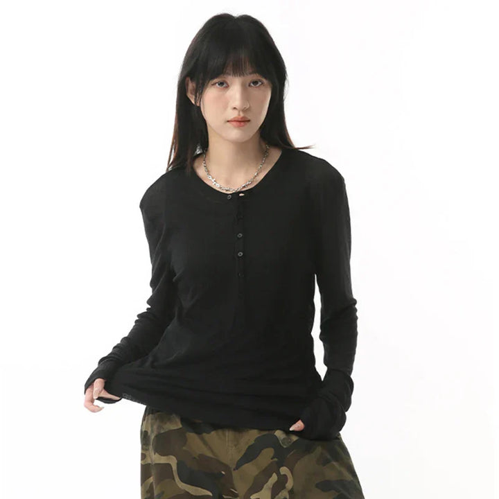 Solid Color Korean Casual Long-Sleeved T-Shirt