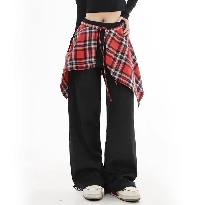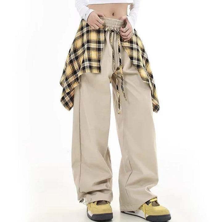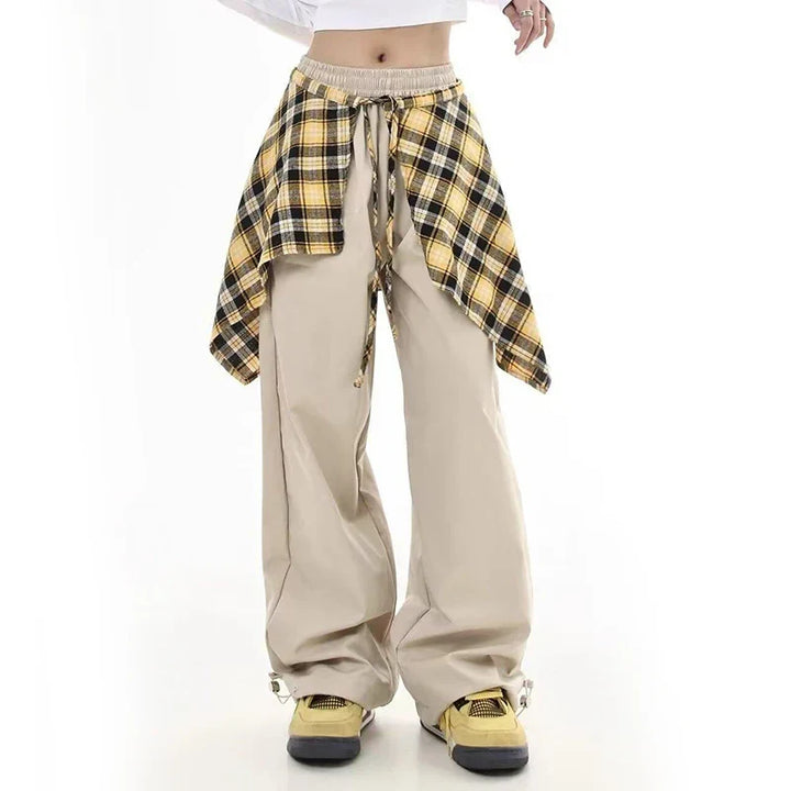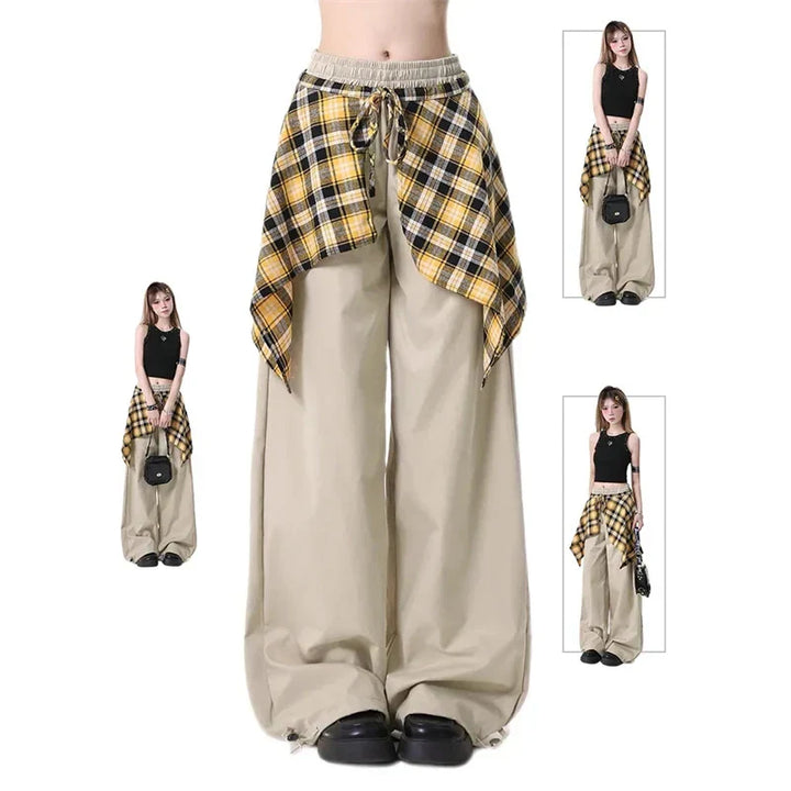 Stylish Cargo Plaid Skirt Pants