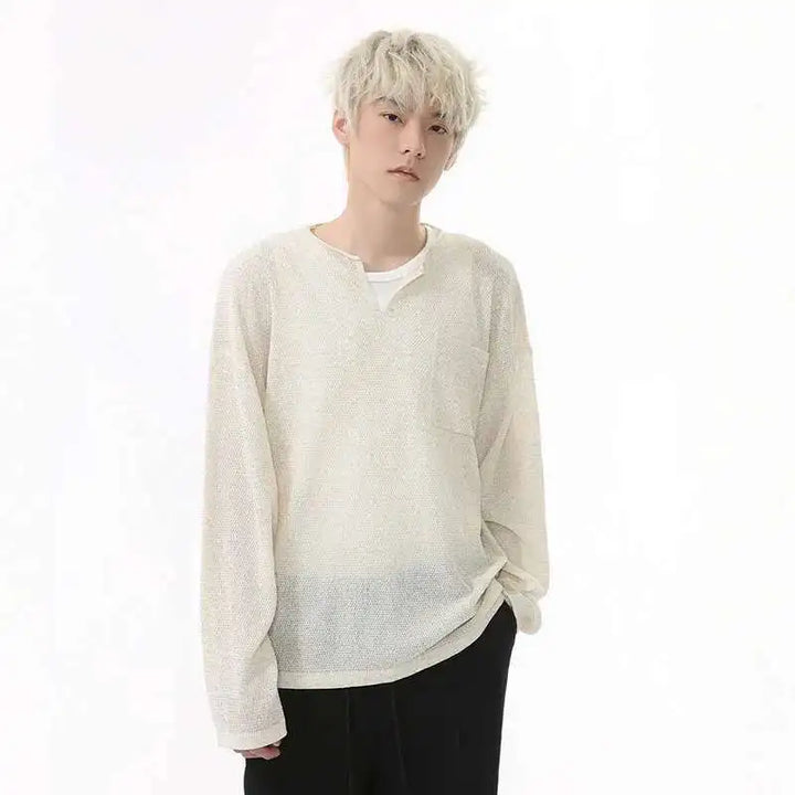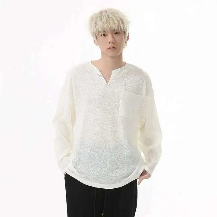 Stylish Korean Long Sleeve V-Neck T-Shirt