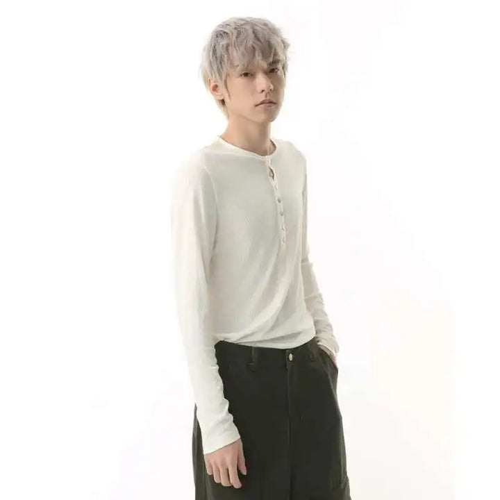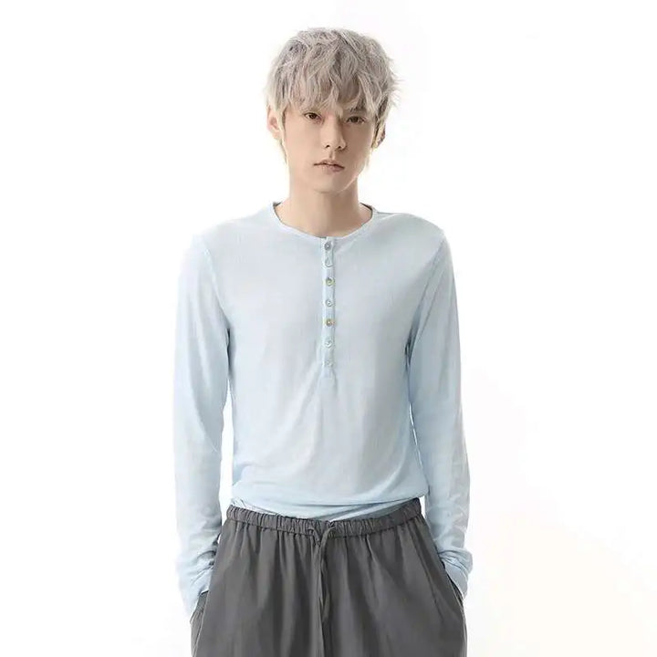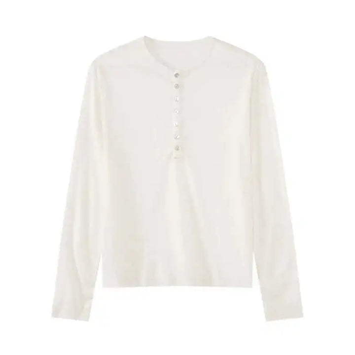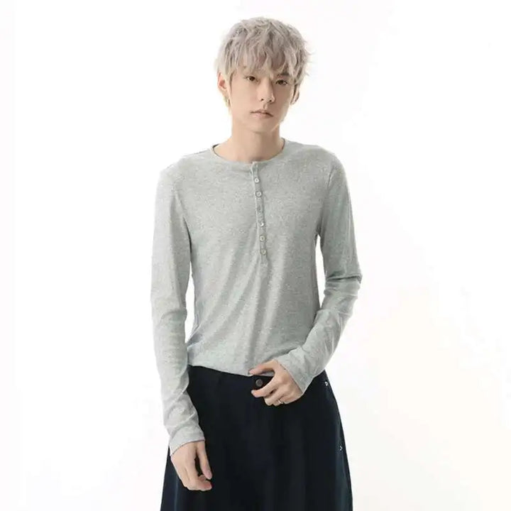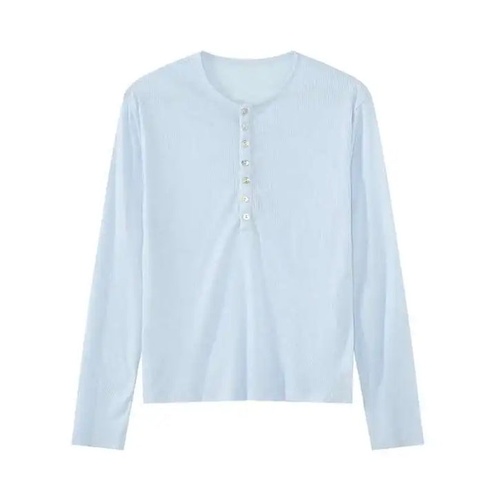 Stylish Korean Round Collar Button T-Shirt