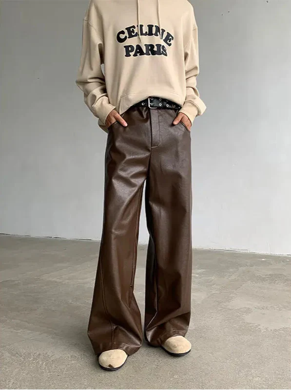 Stylish Wide Leg PU Pants