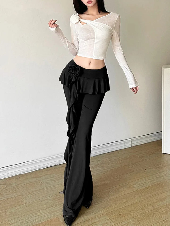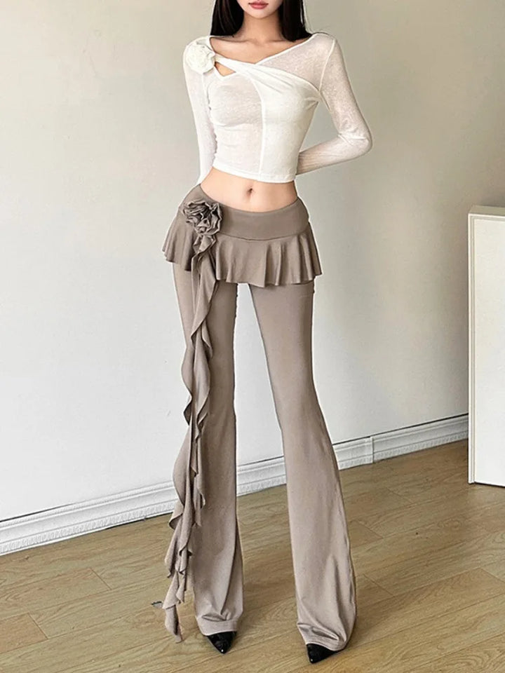 Ruffled Flower Straight Leg Vintage Pants