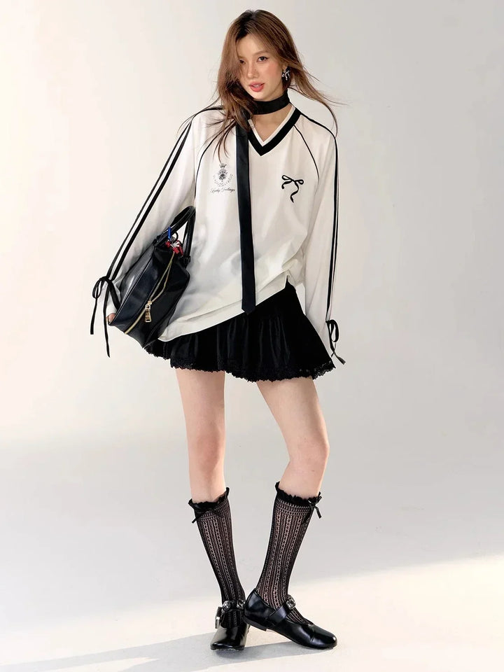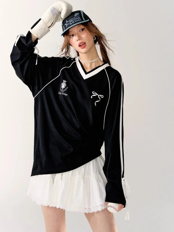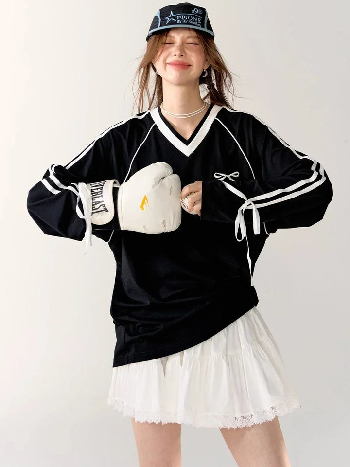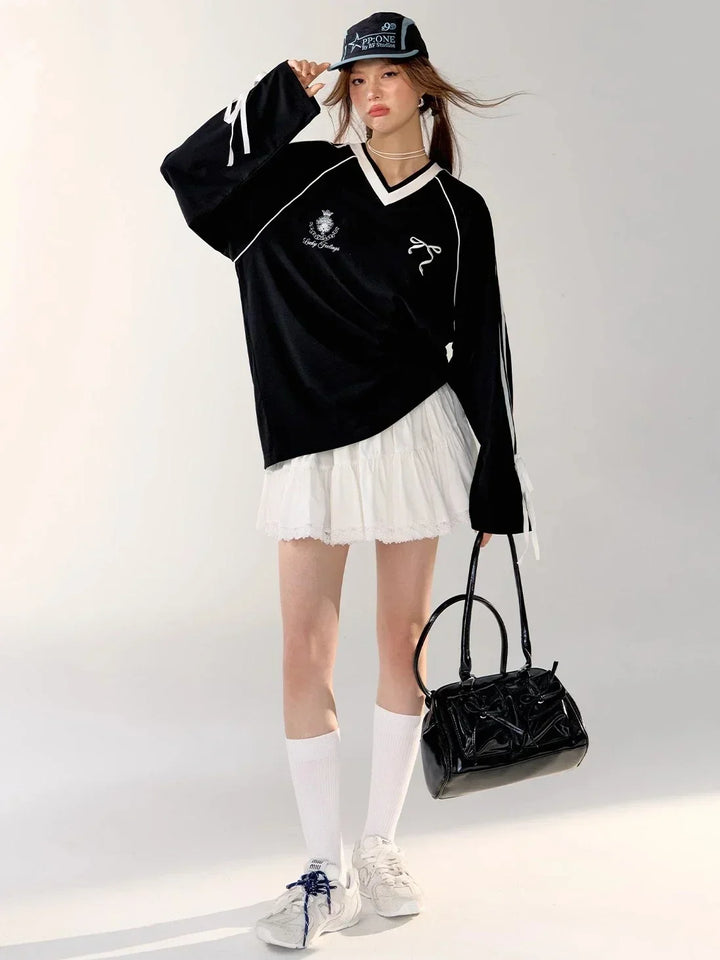 Sweet Oversized V-Neck Graphic Sweatshirts