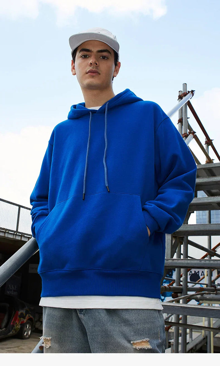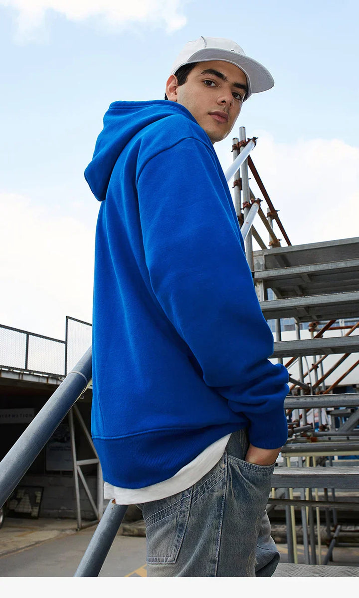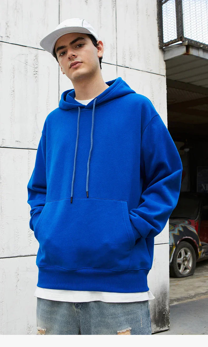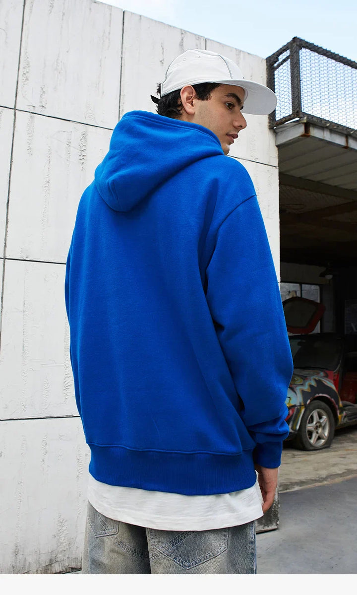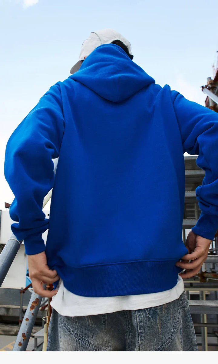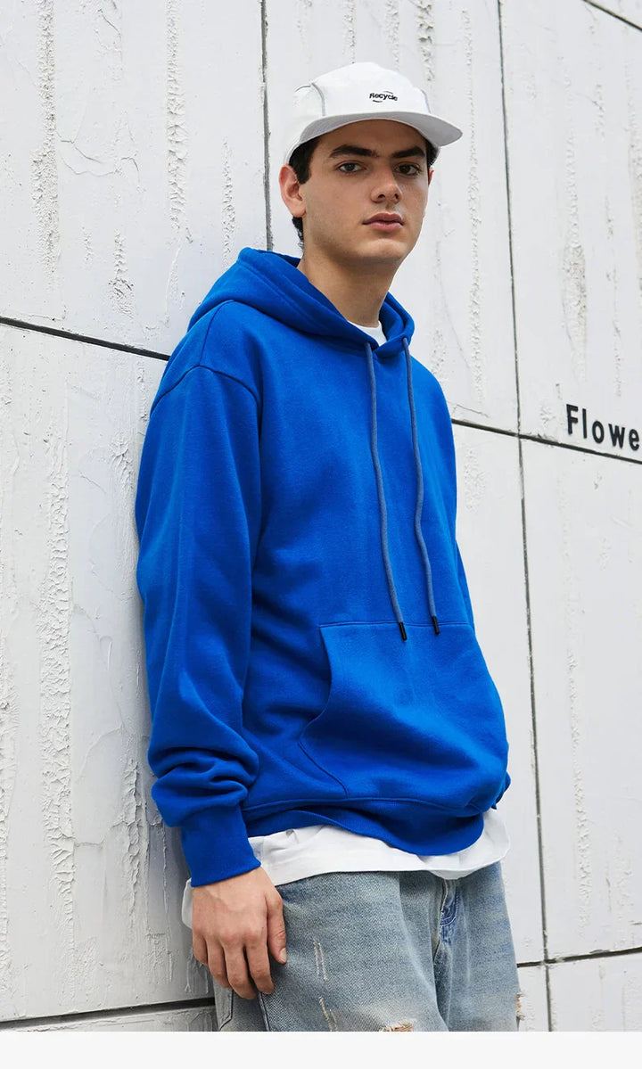 Solid Color Blue Autumn Hoodie