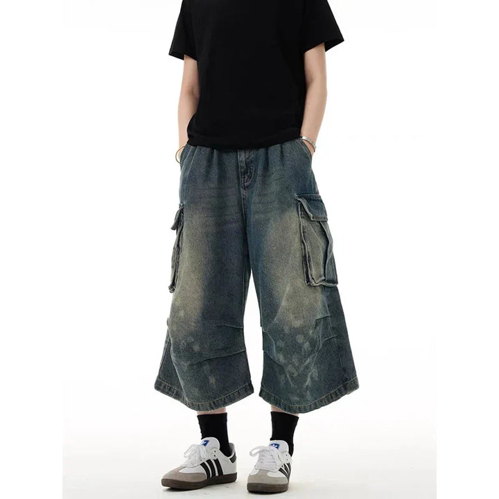 Vintage American Washed Workwear Blue Denim Jort