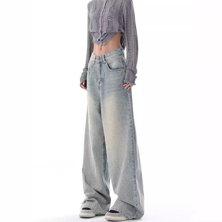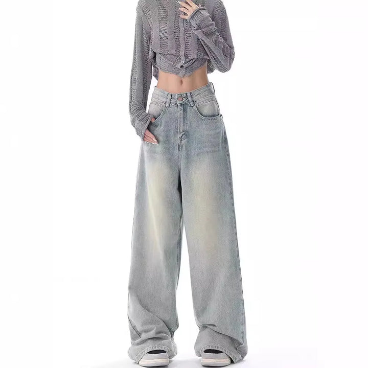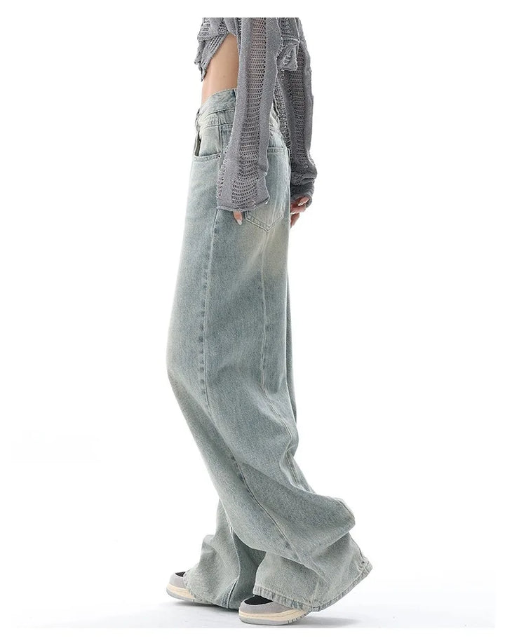 Y2K Off-White Color Distressed Wide Leg Jeans