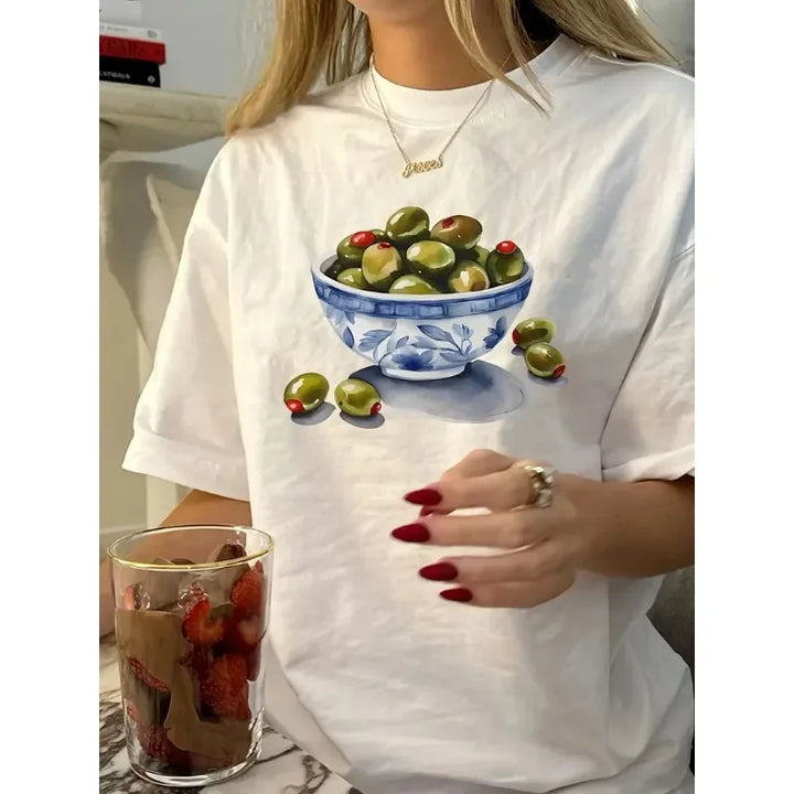 Vintage Geometric Olive Print Summer T-Shirt