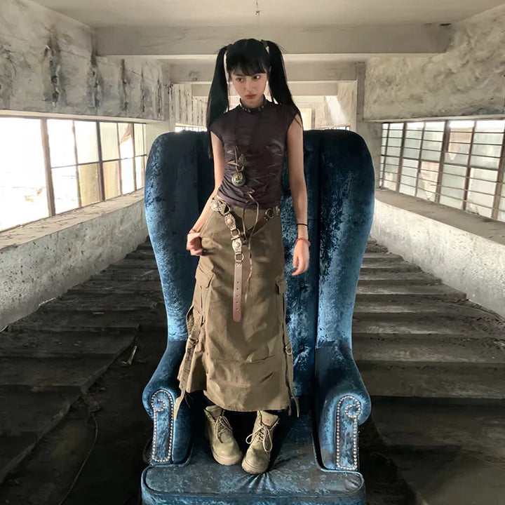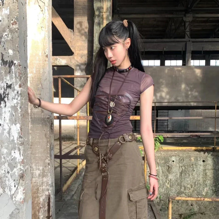 Y2k Vintage Lace-Up Japanese Graphic T-Shirt