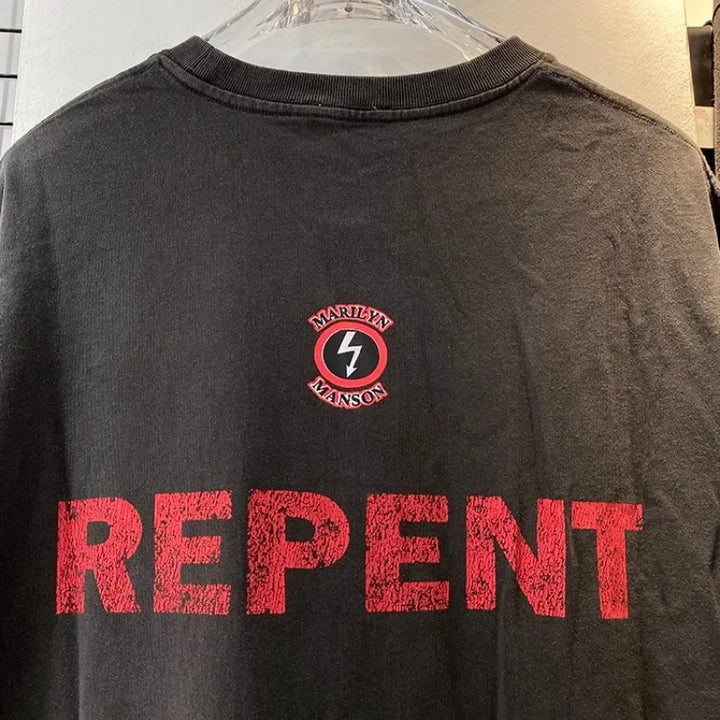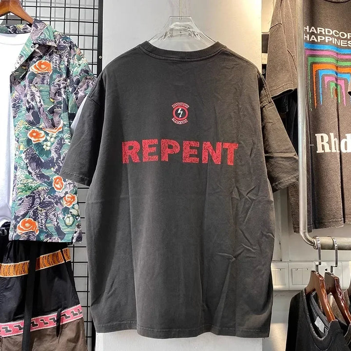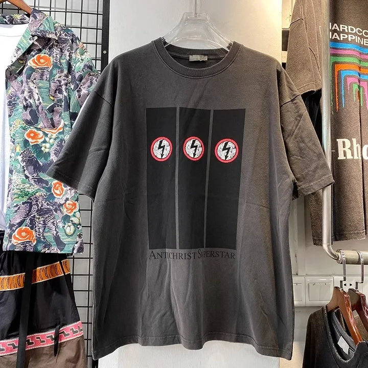 Vintage Lightning Stripe Printed Cotton T-Shirt
