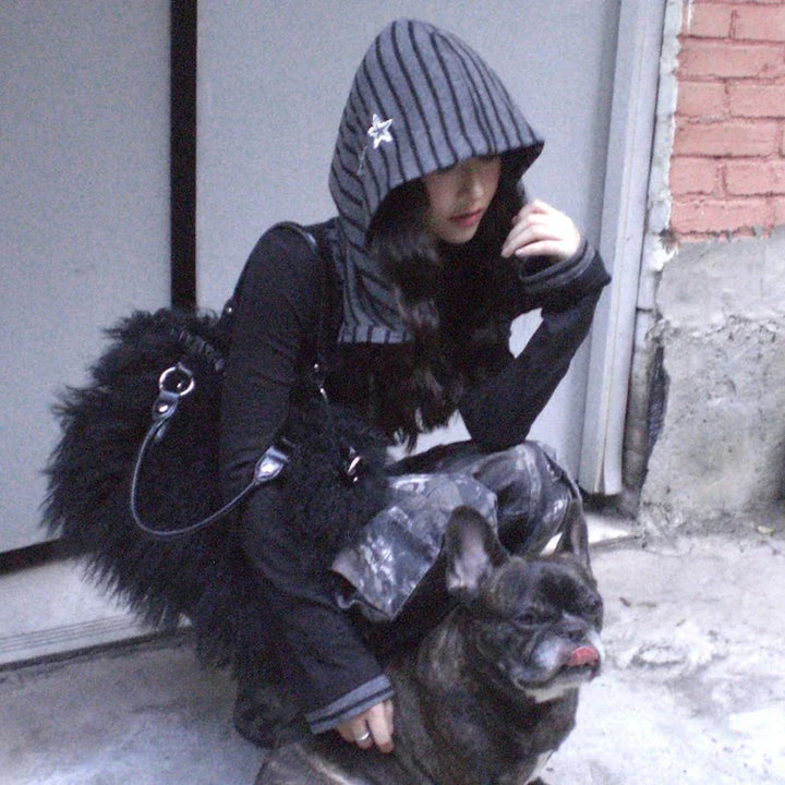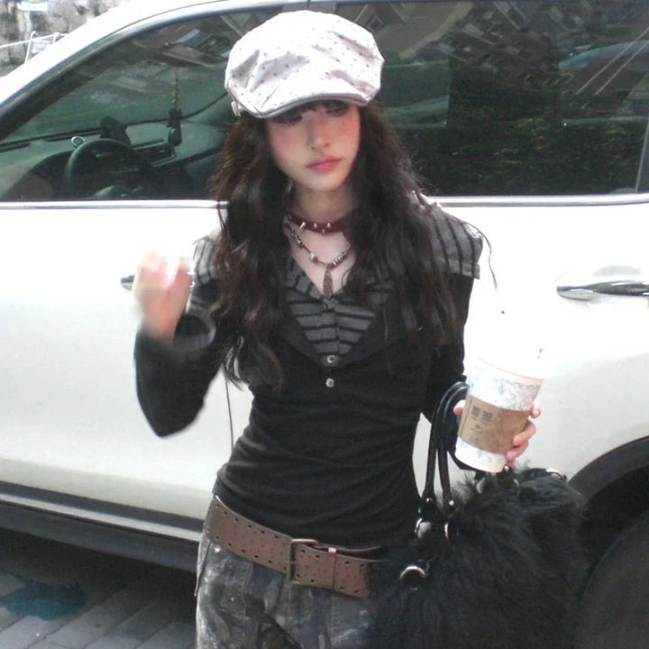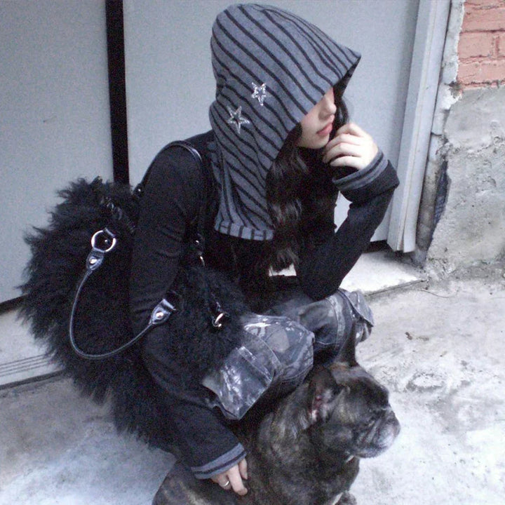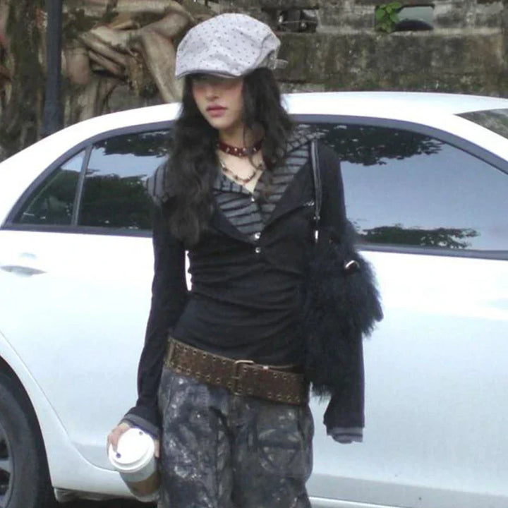 Y2K Grunge Patchwork Long Sleeve Hooded T-Shirt