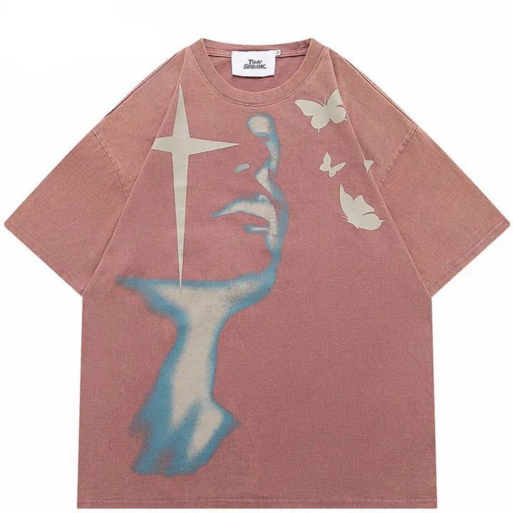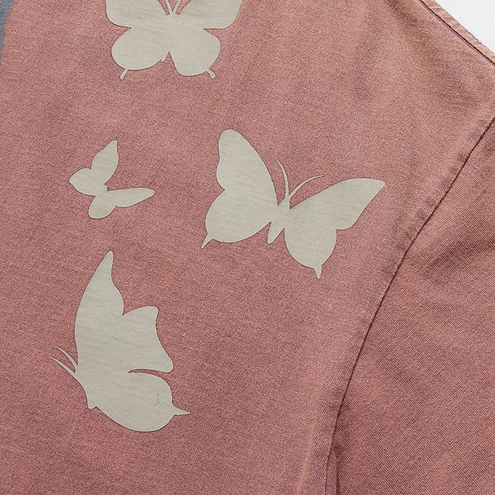 Vintage Shadow Butterfly Graphic Print T-Shirt