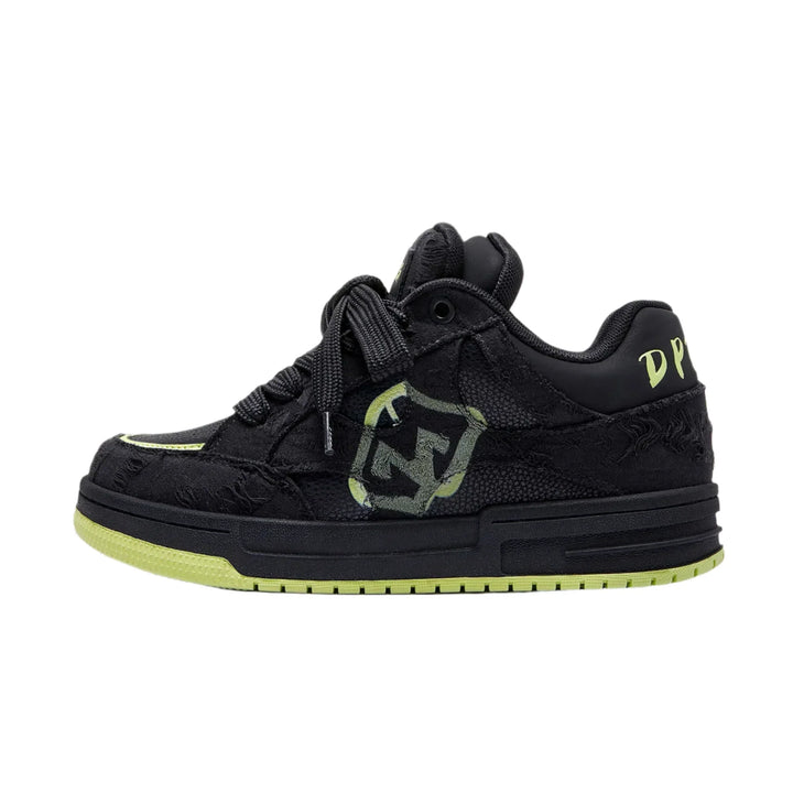 Skate in street art style with these vintage graffiti sneakers! Bold throwback graphics, grippy waffle soles & punk-era durability. Made for shredding and showing off.