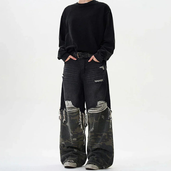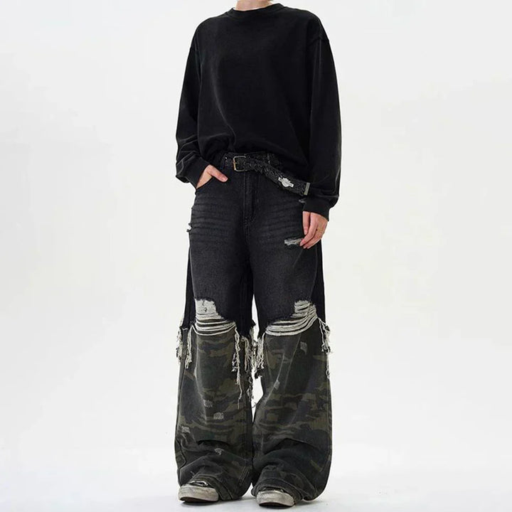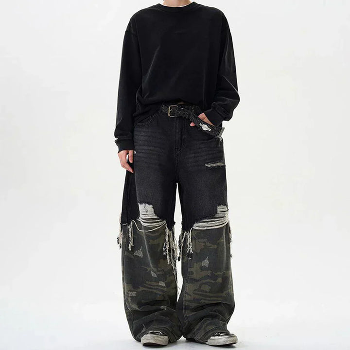 Y2K Camouflage Stitched Baggy Ripped Jeans