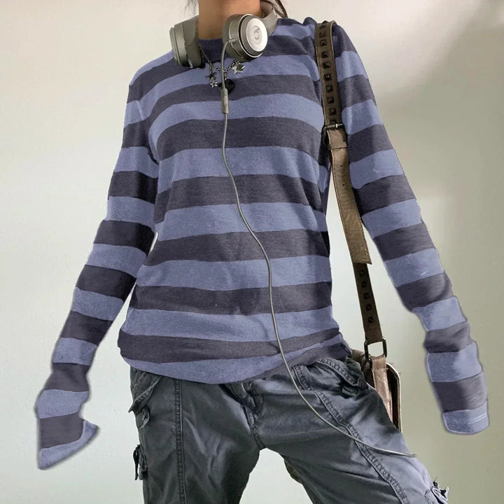 Y2K Gothic Striped Long Sleeve T-Shirt