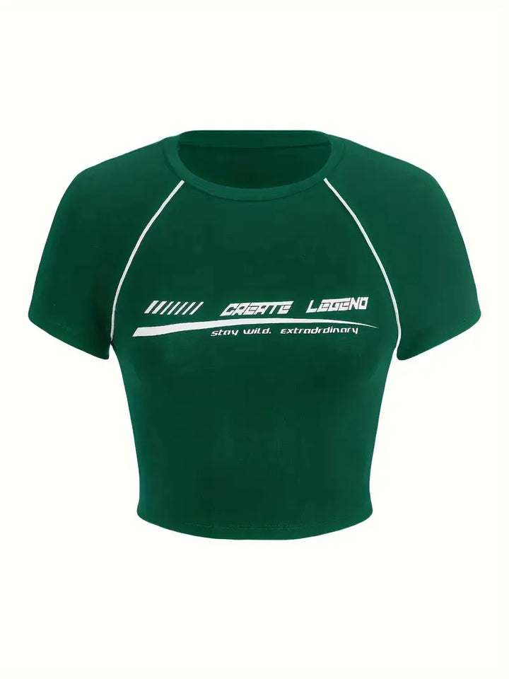 Y2K Monogram Print Crewneck Crop T-Shirt