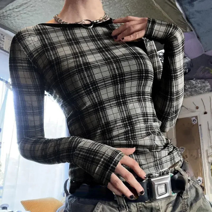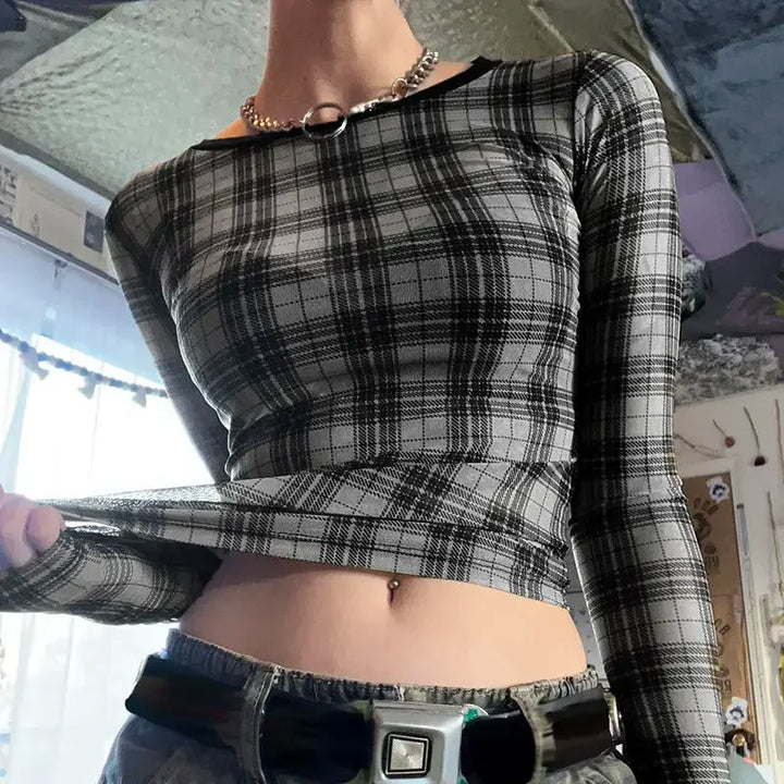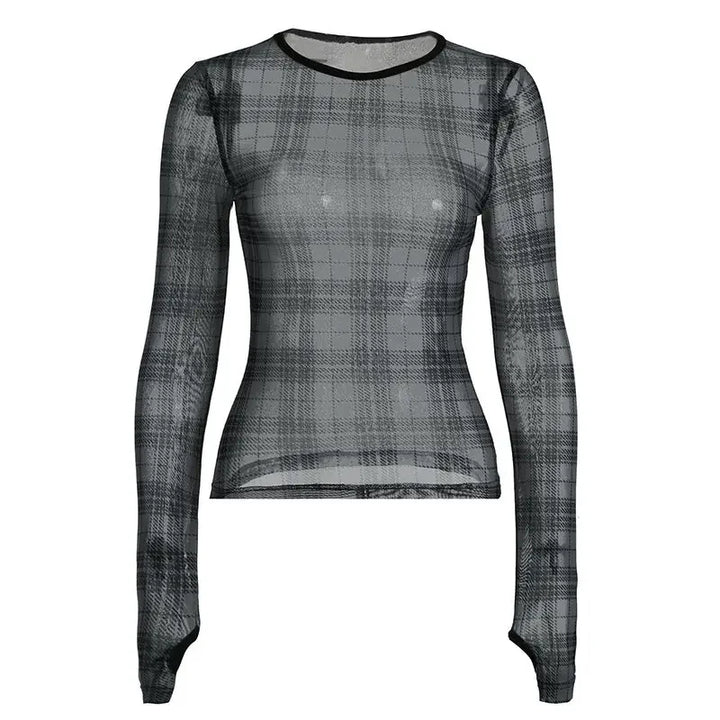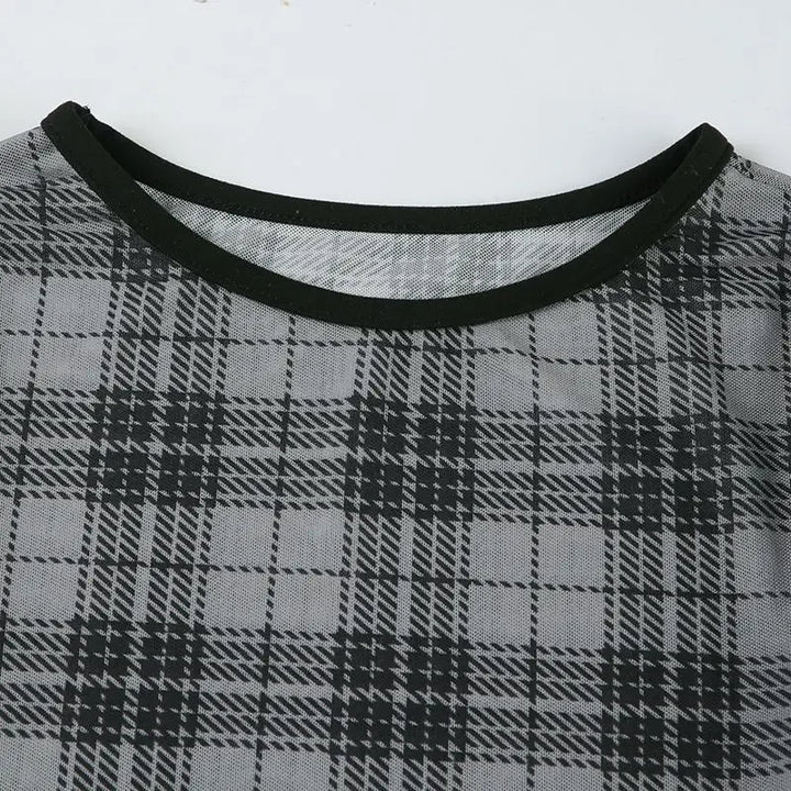 Y2K Plaid Mesh Print Crop T-Shirt