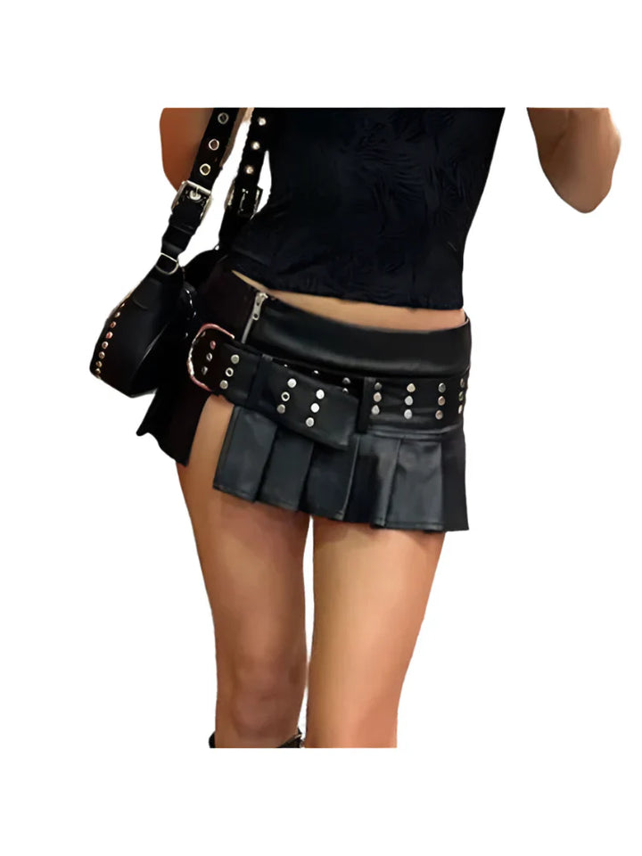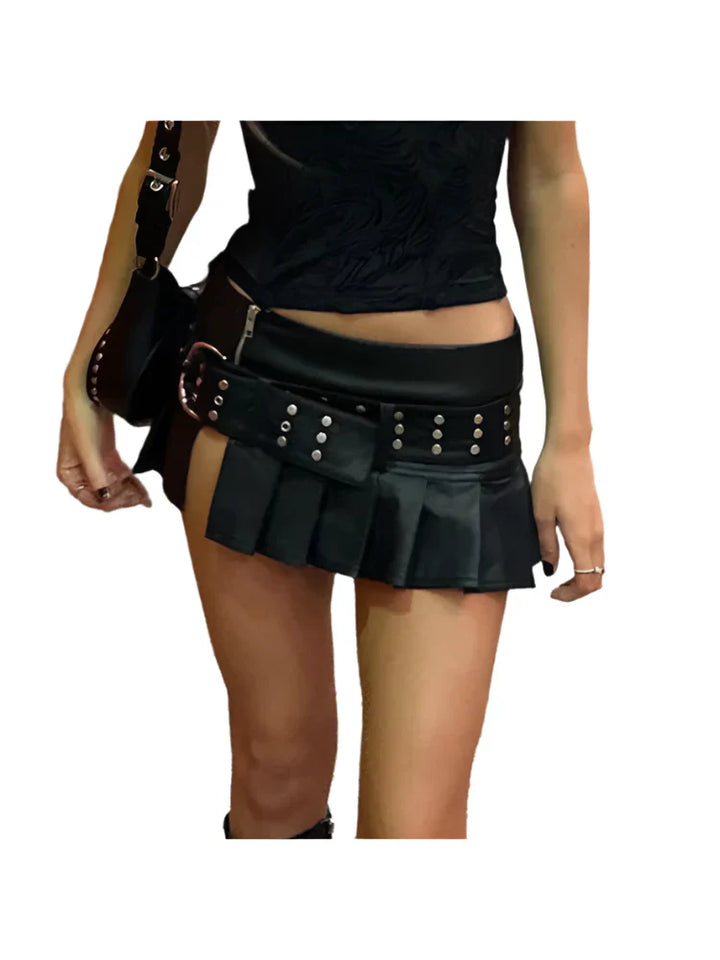 Y2K Pleated Faux Leather A-Line Mini Skirt
