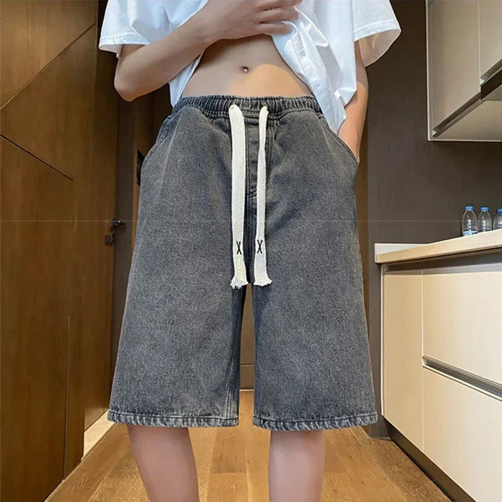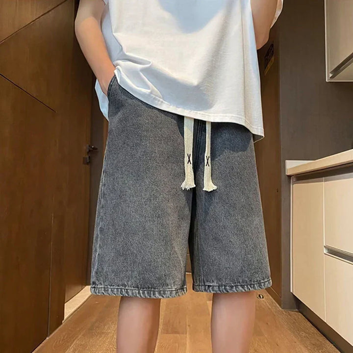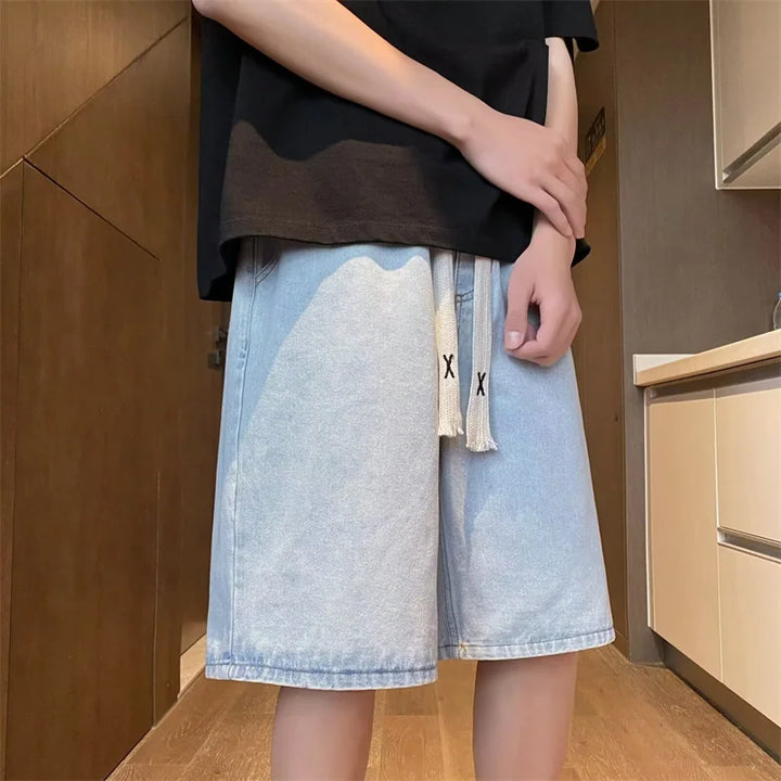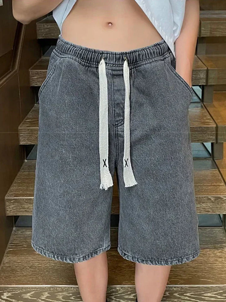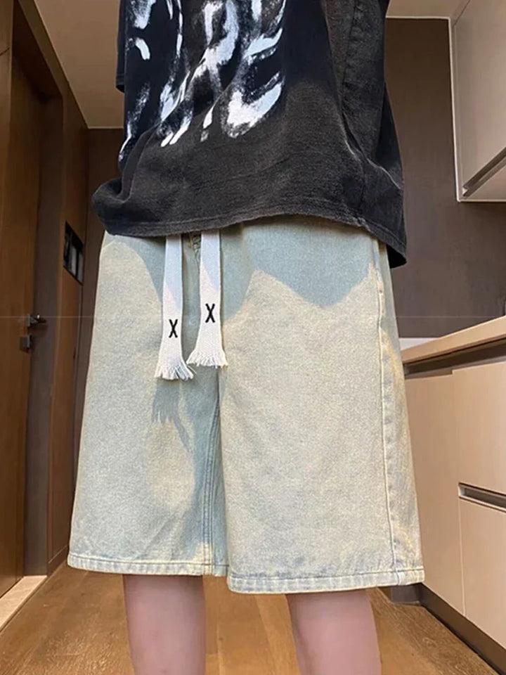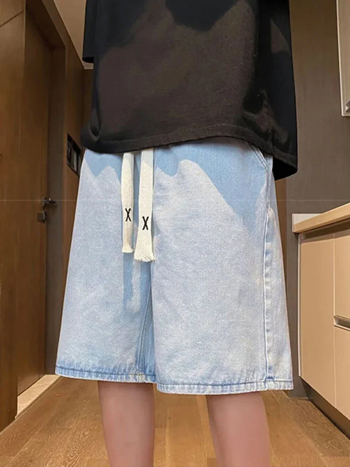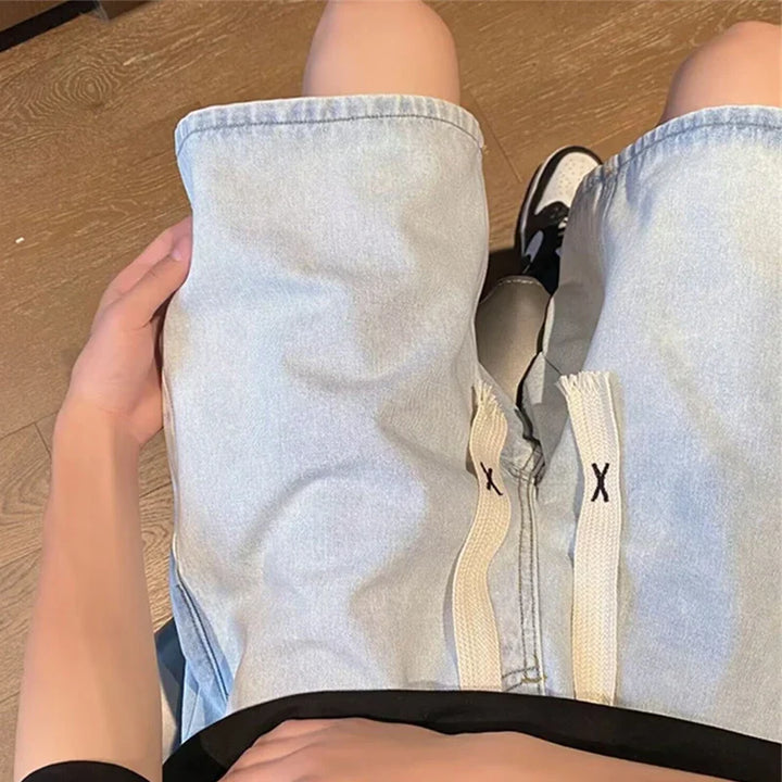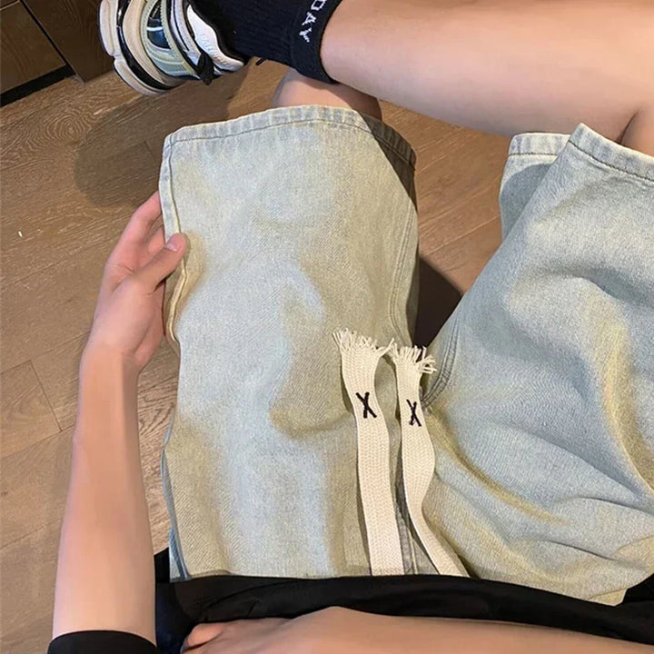 Y2K Retro Blue Drawstring Denim Shorts