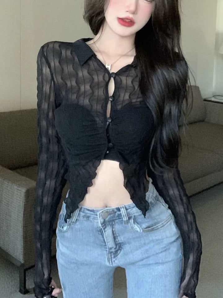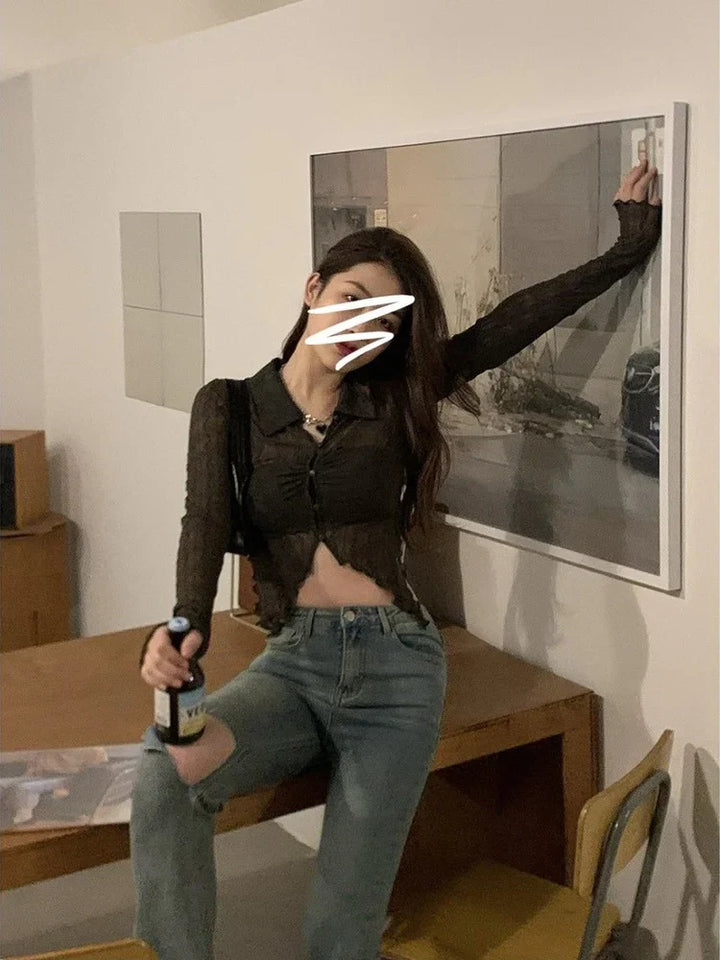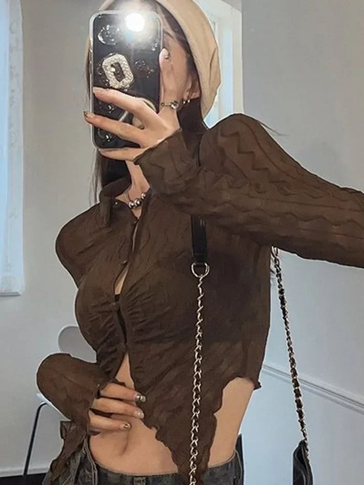 Y2K Sexy Hollow Irregular Blouse Shirt